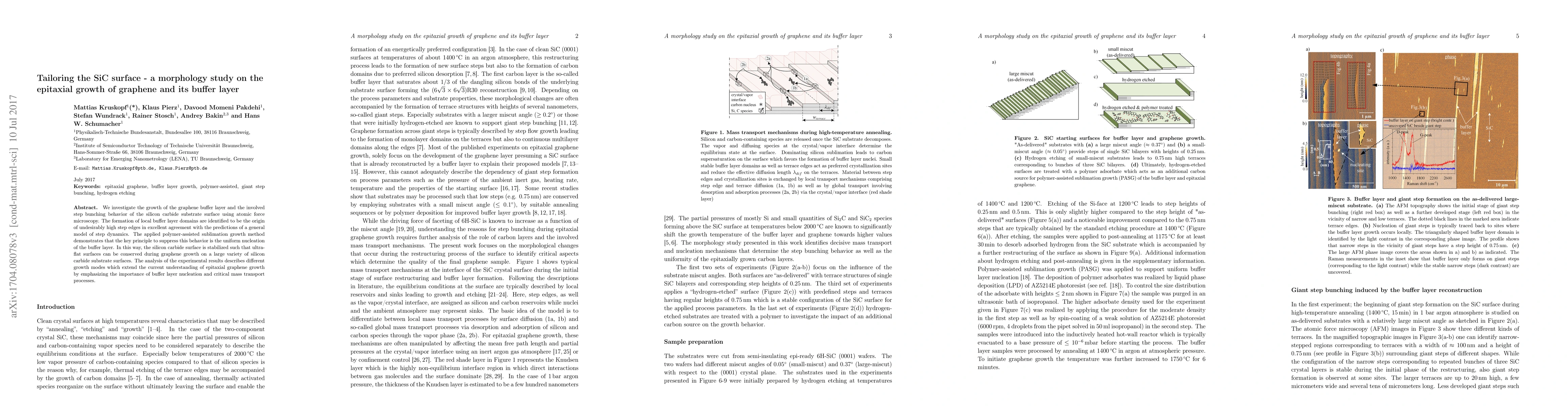 We investigate the growth of the graphene buffer layer and the involved step bunching behavior of the silicon carbide substrate surface using atomic force microscopy. The formation of local buffer layer domains are identified to be the origin of undesirably high step edges in excellent agreement with the predictions of a general model of step dynamics. The applied polymer-assisted sublimation growth method demonstrates that the key principle to suppress this behavior is the uniform nucleation of the buffer layer. In this way, the silicon carbide surface is stabilized such that ultra-flat surfaces can be conserved during graphene growth on a large variety of silicon carbide substrate surfaces. The analysis of the experimental results describes different growth modes which extend the current understanding of epitaxial graphene growth by emphasizing the importance of buffer layer nucleation and critical mass transport processes.