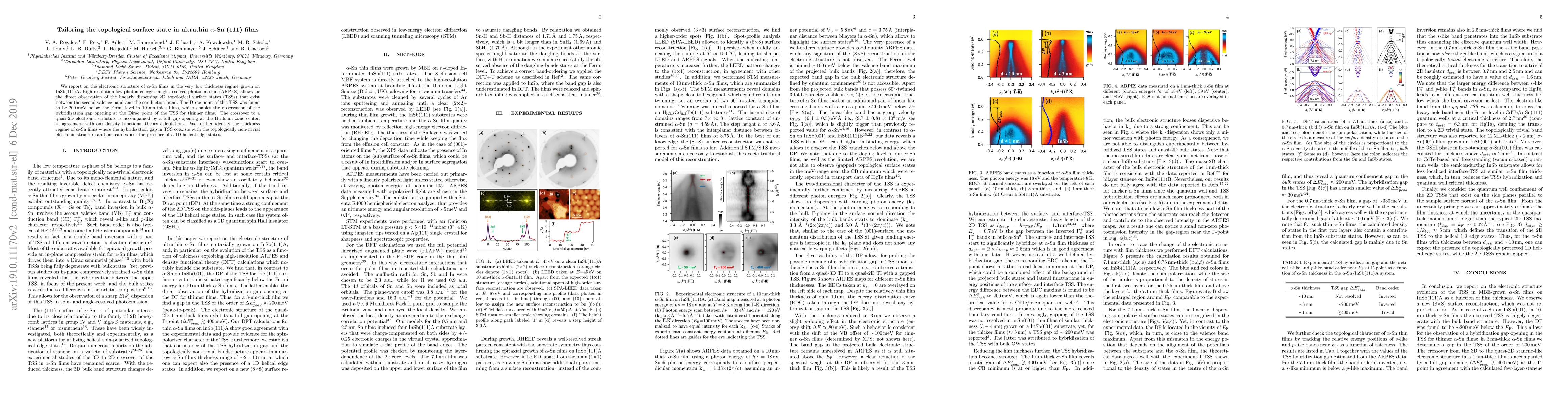 The paper presents detailed ARPES data and DFT calculations demonstrating the electronic structure evolution of ultrathin α-Sn(111) films, highlighting the tunability of topological surface states through film thickness.