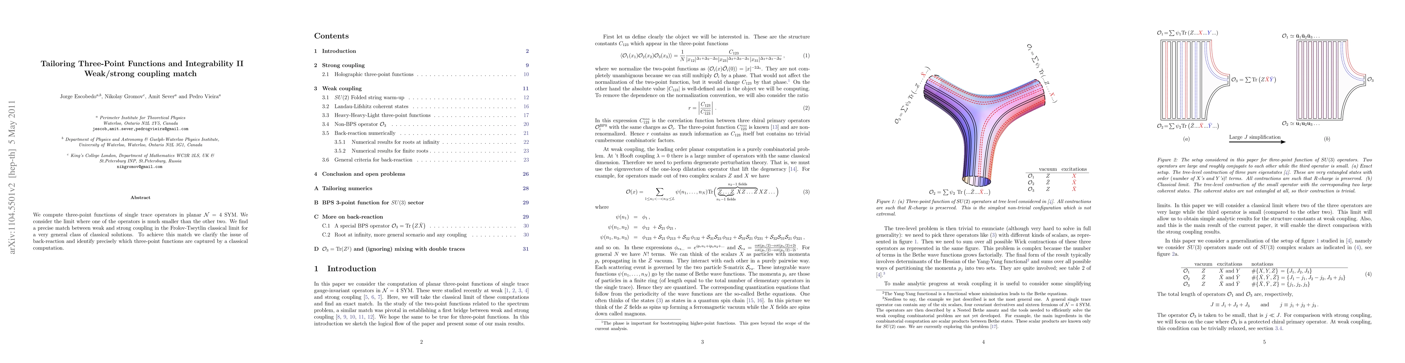 This paper computes three-point functions in planar N=4 SYM, demonstrating a precise match between weak and strong coupling in the Frolov-Tseytlin classical limit for a broad class of solutions. The authors address back-reaction issues to identify which functions can be accurately captured by classical computations.