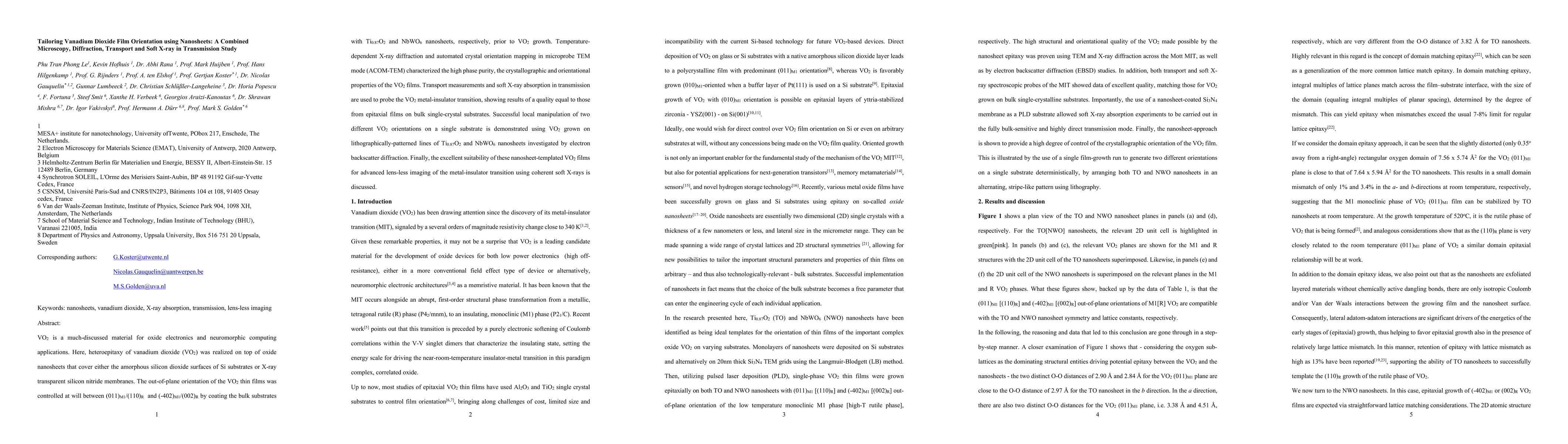 This paper details the heteroepitaxial growth of vanadium dioxide (VO2) films on oxide nanosheets, enabling precise control over their orientation. The study combines microscopy, diffraction, transport, and soft X-ray techniques to demonstrate high-quality VO2 films suitable for oxide electronics and neuromorphic computing, with potential for advanced imaging applications.