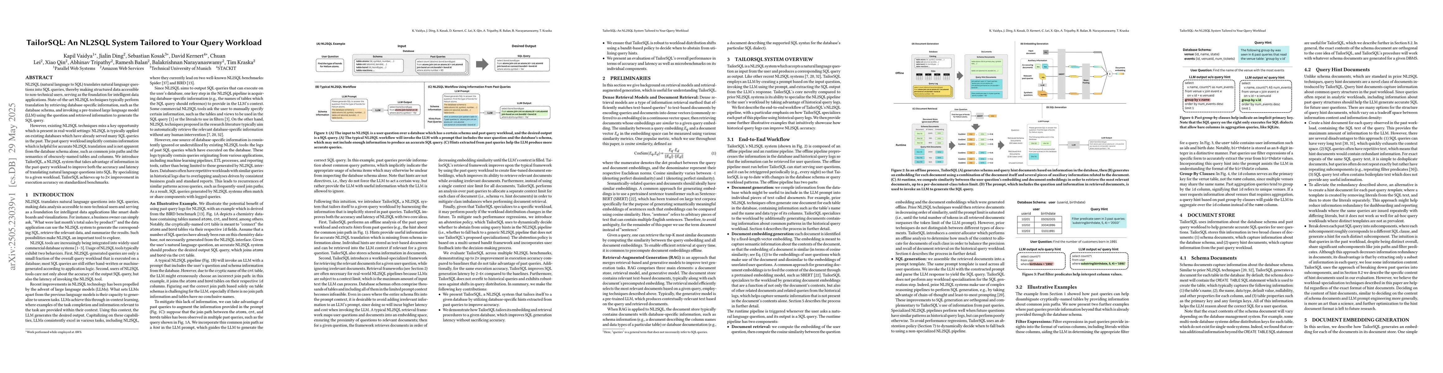 TailorSQL, an NL2SQL system that incorporates past query workload information to improve translation accuracy and latency.