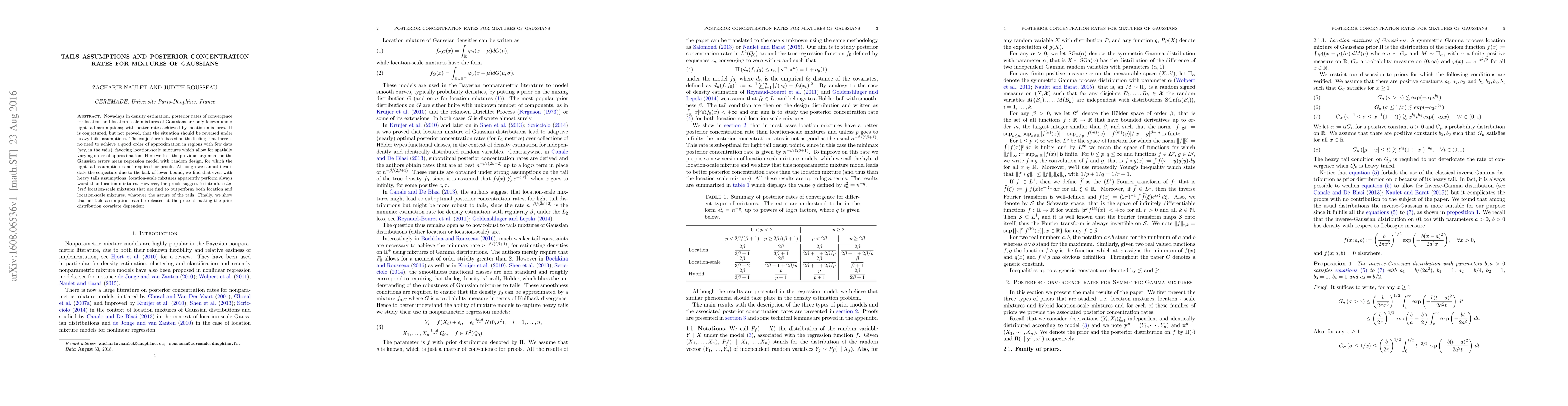 This paper explores posterior concentration rates for mixtures of Gaussians under heavy-tail assumptions, finding that location-scale mixtures perform worse than location mixtures. It proposes hybrid mixtures that outperform both types, and suggests covariate-dependent priors to release tail assumptions.