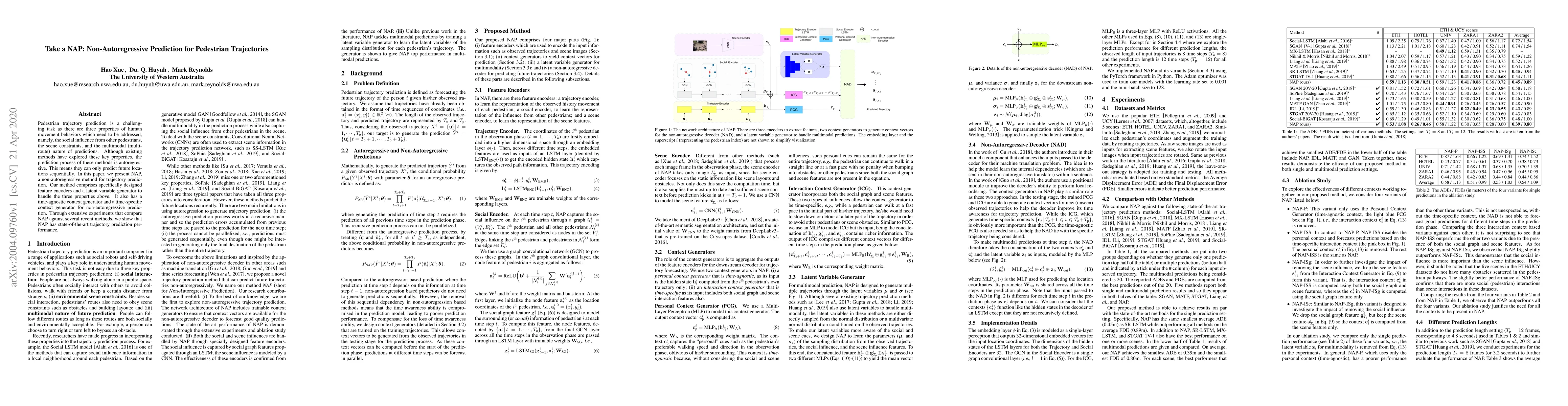 This paper introduces NAP, a non-autoregressive method for predicting pedestrian trajectories, addressing social influence, scene constraints, and multimodal predictions. Unlike autoregressive methods, NAP's designed feature encoders and generators enable simultaneous prediction, achieving state-of-the-art performance in trajectory prediction.