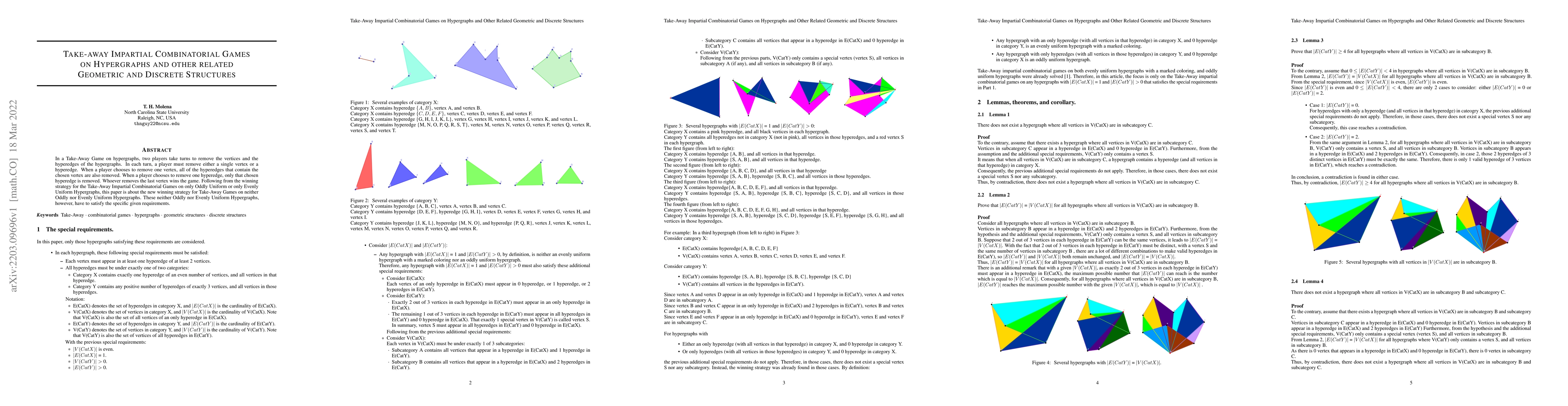 In a Take-Away Game on hypergraphs, two players take turns to remove the vertices and the hyperedges of the hypergraphs. In each turn, a player must remove either a single vertex or a hyperedge. When a player chooses to remove one vertex, all of the hyperedges that contain the chosen vertex are also removed. When a player chooses to remove one hyperedge, only that chosen hyperedge is removed. Whoever removes the last vertex wins the game. Following from the winning strategy for the Take-Away Impartial Combinatorial Games on only Oddly Uniform or only Evenly Uniform Hypergraphs, this paper is about the new winning strategy for Take-Away Games on neither Oddly nor Evenly Uniform Hypergraphs. These neither Oddly nor Evenly Uniform Hypergraphs, however, have to satisfy the specific given requirements.