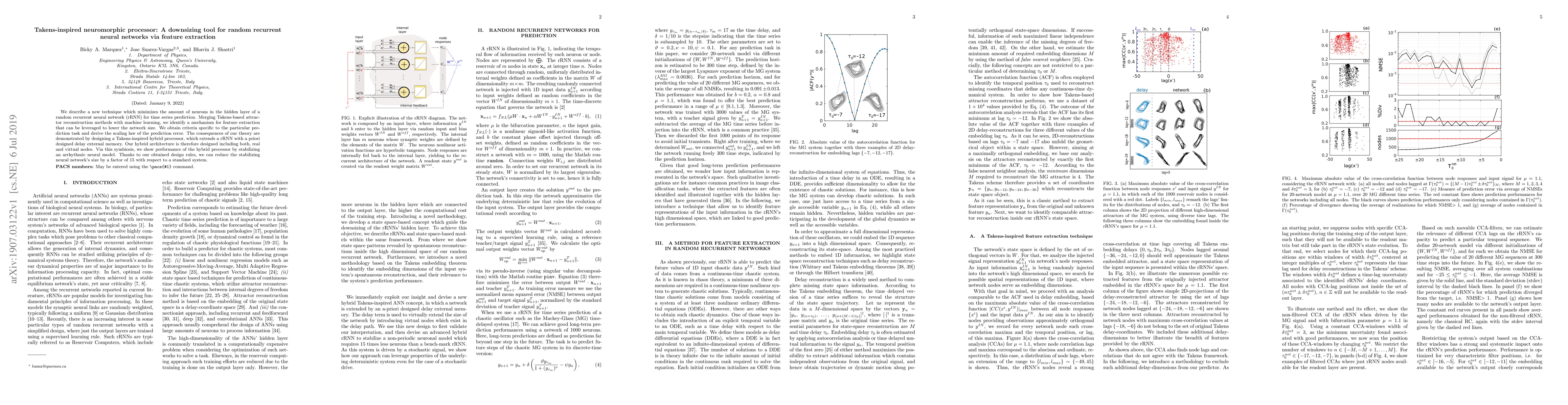 A new processor design reduces the size of random recurrent neural networks for time series prediction by up to 85% through feature extraction using Takens-inspired methods, leading to improved performance and efficiency.
