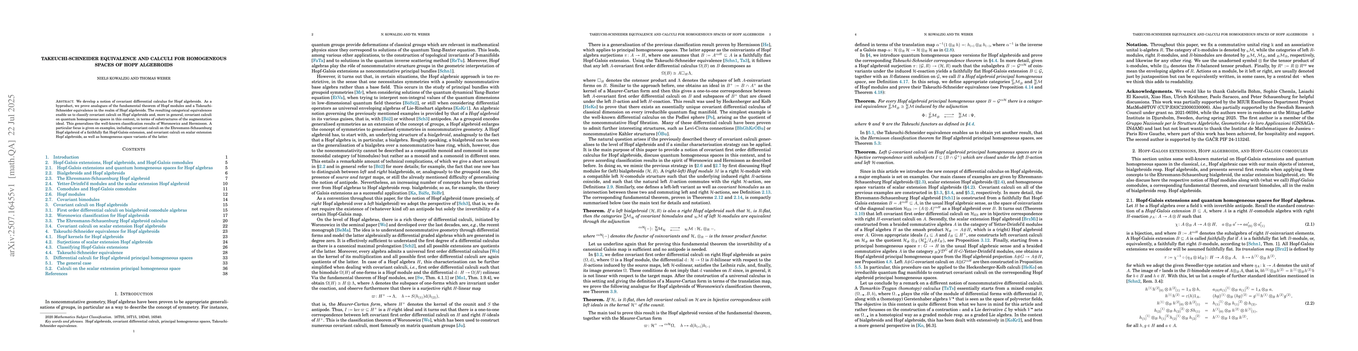 The research develops a covariant differential calculus for Hopf algebroids, leading to analogues of the fundamental theorem of Hopf modules and a Takeuchi-Schneider equivalence in the realm of Hopf algebroids.