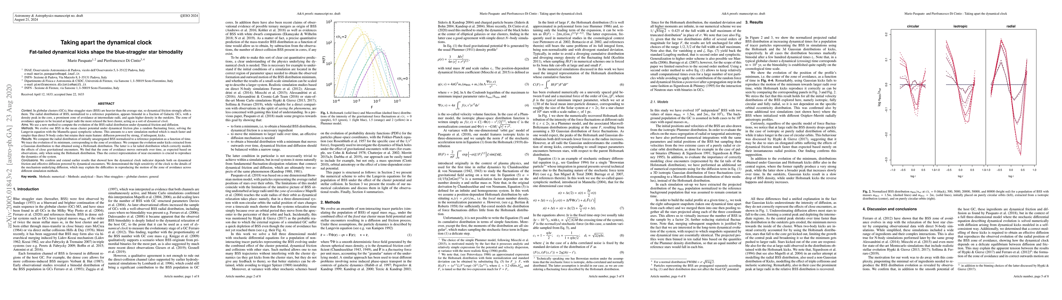 In globular clusters, blue straggler stars are heavier than the average star, so dynamical friction strongly affects them. The radial distribution of BSS, normalized to a reference population, appears bimodal in a fraction of Galactic GCs, with a density peak in the core, a prominent zone of avoidance at intermediate radii, and again higher density in the outskirts. The zone of avoidance appears to be located at larger radii the more relaxed the host cluster, acting as a sort of dynamical clock. We use a new method to compute the evolution of the BSS radial distribution under dynamical friction and diffusion. We evolve our BSS in the mean cluster potential under dynamical friction plus a random fluctuating force, solving the Langevin equation with the Mannella quasi symplectic scheme. This amounts to a new simulation method which is much faster and simpler than direct N-body codes but retains their main feature: diffusion powered by strong, if infrequent, kicks. We compute the radial distribution of initially unsegregated BSS normalized to a reference population as a function of time. We trace the evolution of its minimum, corresponding to the zone of avoidance. We compare the evolution under kicks extracted from a Gaussian distribution to that obtained using a Holtsmark distribution. The latter is a fat tailed distribution which correctly models the effects of close gravitational encounters. We find that the zone of avoidance moves outwards over time, as expected based on observations, only when using the Holtsmark distribution. Thus the correct representation of near encounters is crucial to reproduce the dynamics of the system. We confirm and extend earlier results that showed how the dynamical clock indicator depends both on dynamical friction and effective diffusion powered by dynamical encounters.