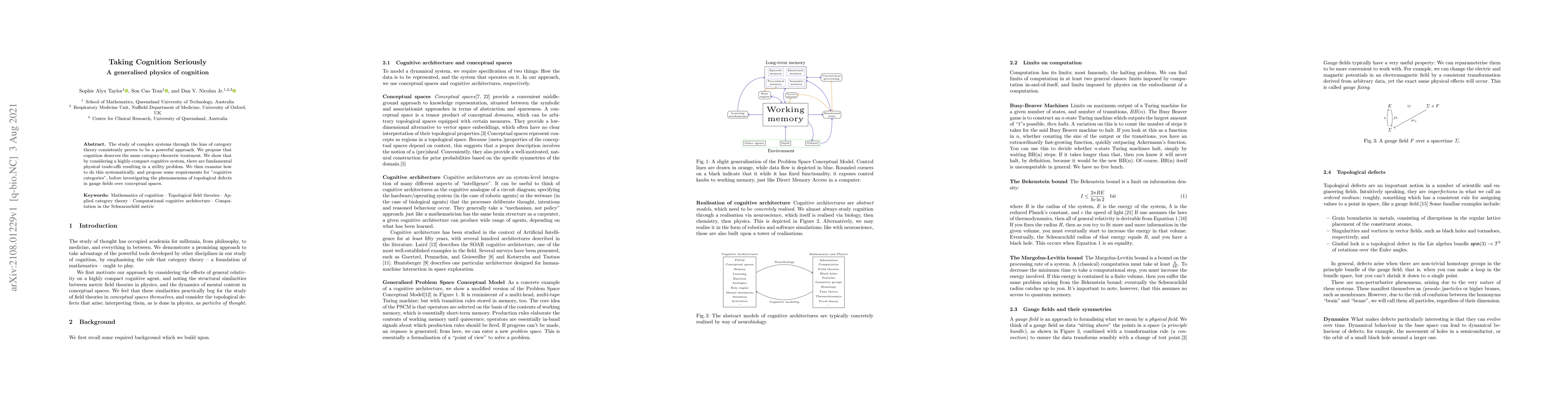 The study of complex systems through the lens of category theory consistently proves to be a powerful approach. We propose that cognition deserves the same category-theoretic treatment. We show that by considering a highly-compact cognitive system, there are fundamental physical trade-offs resulting in a utility problem. We then examine how to do this systematically, and propose some requirements for "cognitive categories", before investigating the phenomenona of topological defects in gauge fields over conceptual spaces.