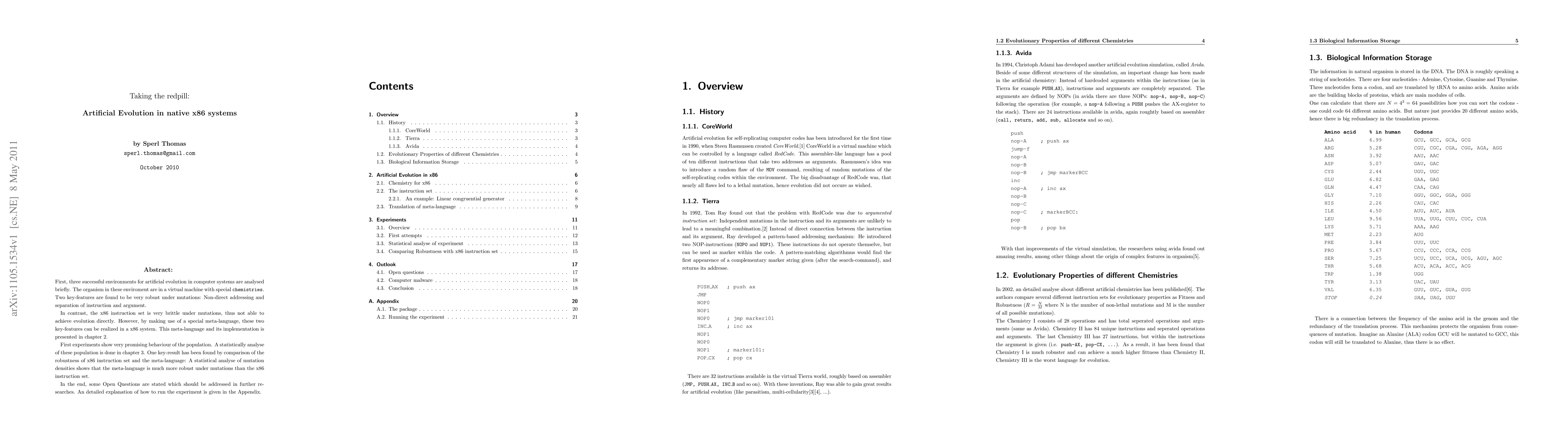 This paper explores the implementation of artificial evolution directly on native x86 systems, analogous to successful simulations like Tierra or Avida, and presents initial results from statistical experiments on this novel approach.