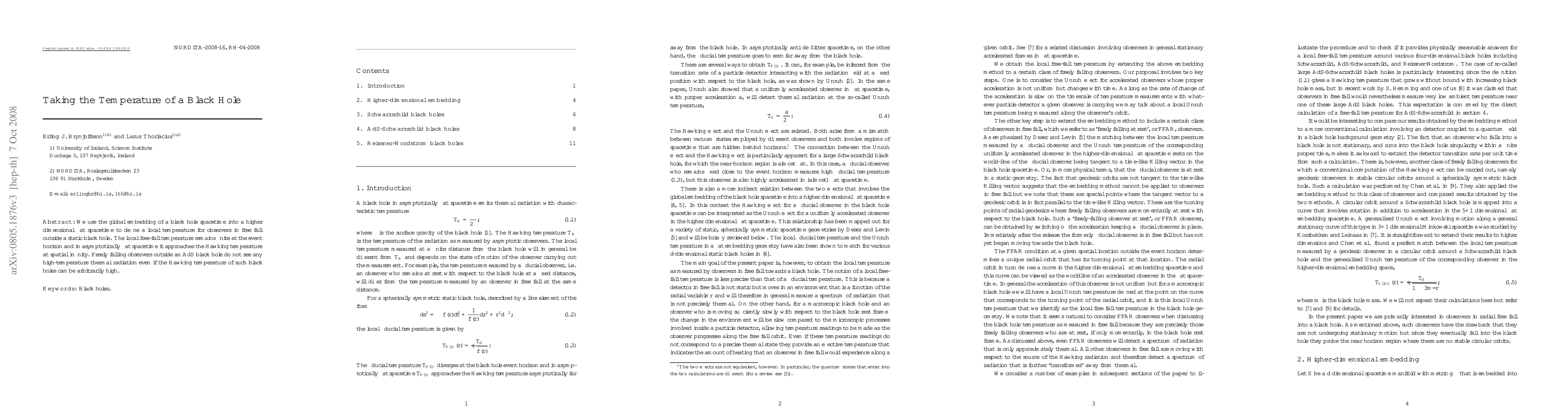 We use the global embedding of a black hole spacetime into a higher dimensional flat spacetime to define a local temperature for observers in free fall outside a static black hole. The local free-fall temperature remains finite at the event horizon and in asymptotically flat spacetime it approaches the Hawking temperature at spatial infinity. Freely falling observers outside an AdS black hole do not see any high-temperature thermal radiation even if the Hawking temperature of such black holes can be arbitrarily high.
