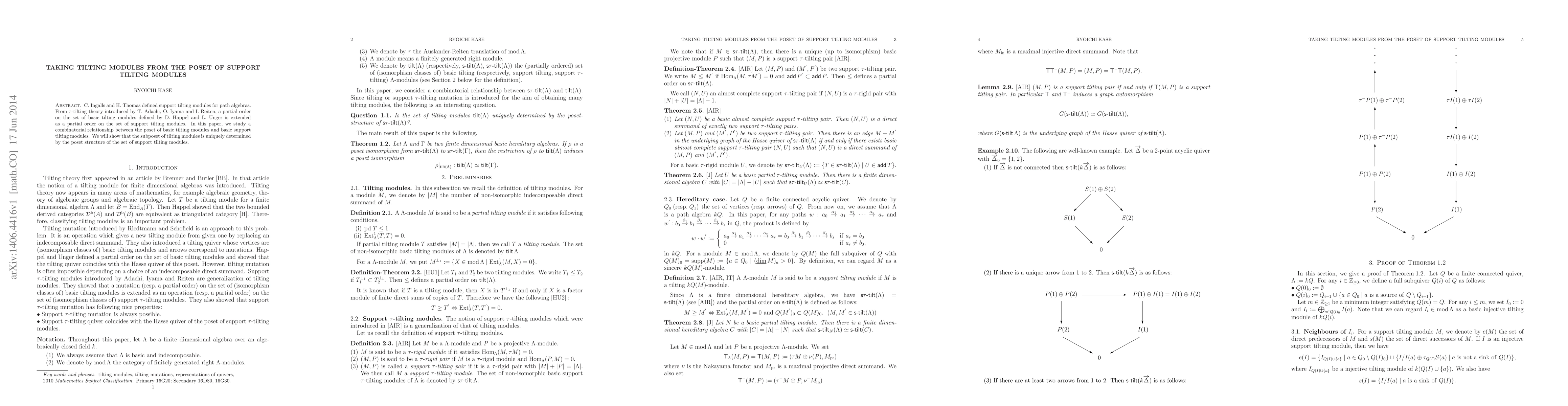 This paper explores the combinatorial relationship between the poset of basic tilting modules and basic support tilting modules, demonstrating that the subposet of tilting modules is uniquely determined by the poset structure of support tilting modules.
