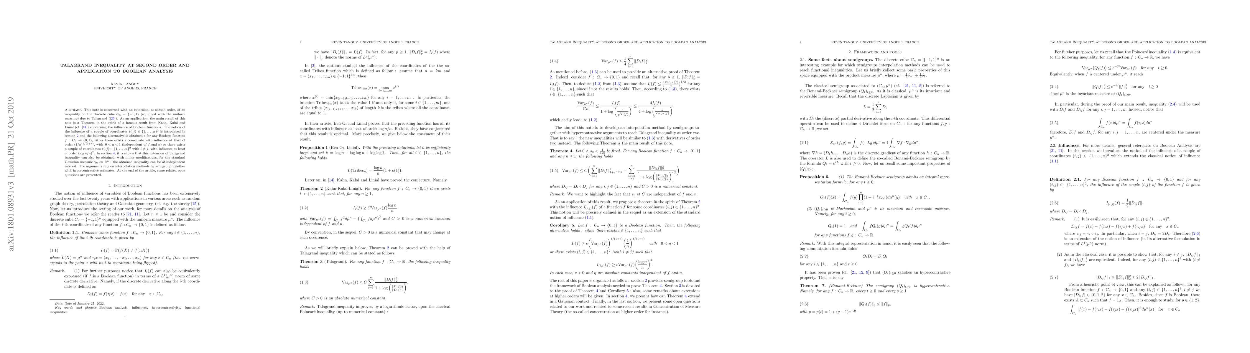 This paper extends Talagrand's inequality to second order on the discrete cube, introducing the influence of coordinate pairs and proving a Boolean function theorem. It also applies the extended inequality to Gaussian measure, using interpolation methods and hypercontractive estimates.