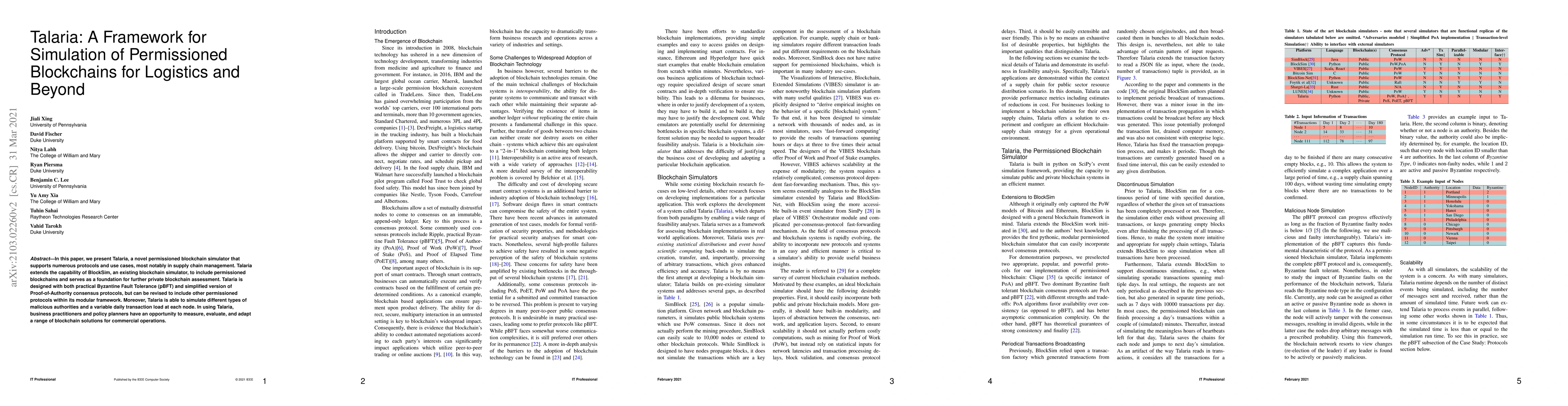 Talaria is a novel permissioned blockchain simulator designed to support various protocols and use cases, particularly in supply chain management. It extends BlockSim to include permissioned blockchains and features practical Byzantine Fault Tolerance and Proof-of-Authority consensus protocols, allowing simulation of different malicious authorities and transaction loads.