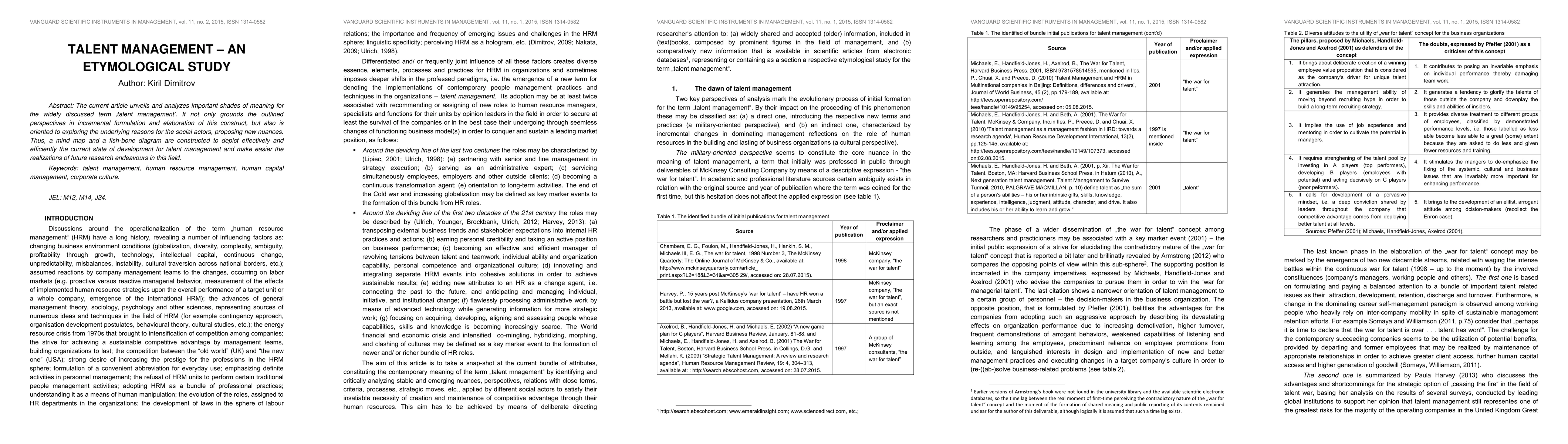 It uses mind maps and fish-bone diagrams to visualize the current state of talent management and provides a foundation for further exploration of this field.