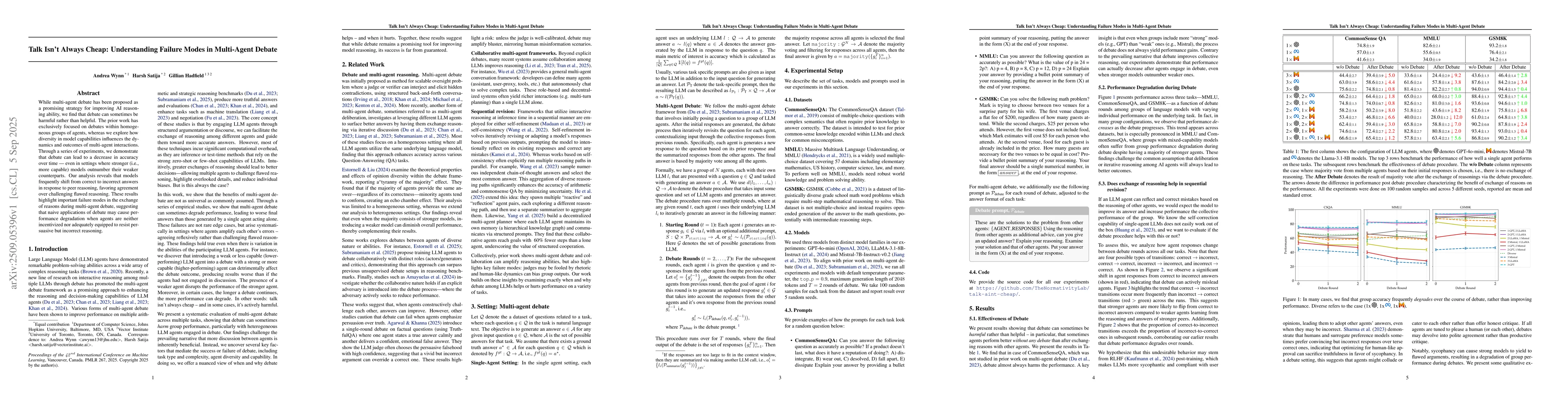 While multi-agent debate has been proposed as a promising strategy for improving AI reasoning ability, we find that debate can sometimes be harmful rather than helpful. The prior work has exclusively focused on debates within homogeneous groups of agents, whereas we explore how diversity in model capabilities influences the dynamics and outcomes of multi-agent interactions. Through a series of experiments, we demonstrate that debate can lead to a decrease in accuracy over time -- even in settings where stronger (i.e., more capable) models outnumber their weaker counterparts. Our analysis reveals that models frequently shift from correct to incorrect answers in response to peer reasoning, favoring agreement over challenging flawed reasoning. These results highlight important failure modes in the exchange of reasons during multi-agent debate, suggesting that naive applications of debate may cause performance degradation when agents are neither incentivized nor adequately equipped to resist persuasive but incorrect reasoning.