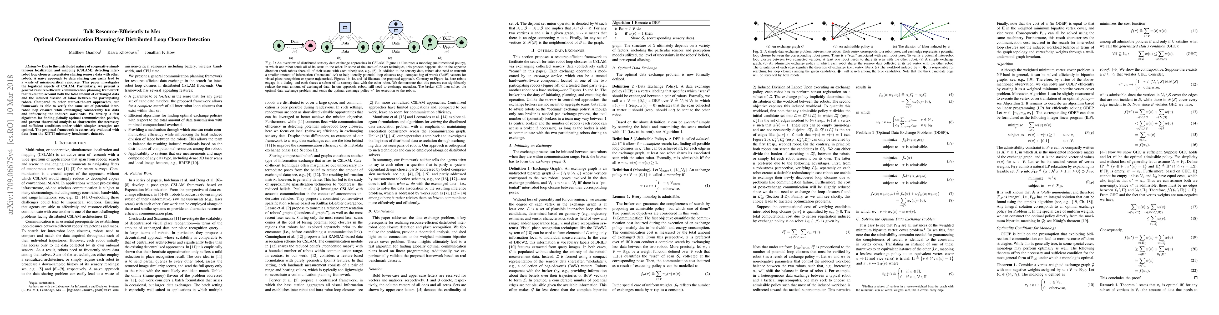 This research presents a resource-efficient communication planning framework for distributed cooperative simultaneous localization and mapping (CSLAM). It reduces data exchange and workload division among robots, verifying the same loop closures with less data than existing methods, backed by theoretical analysis and KITTI benchmark evaluations.
