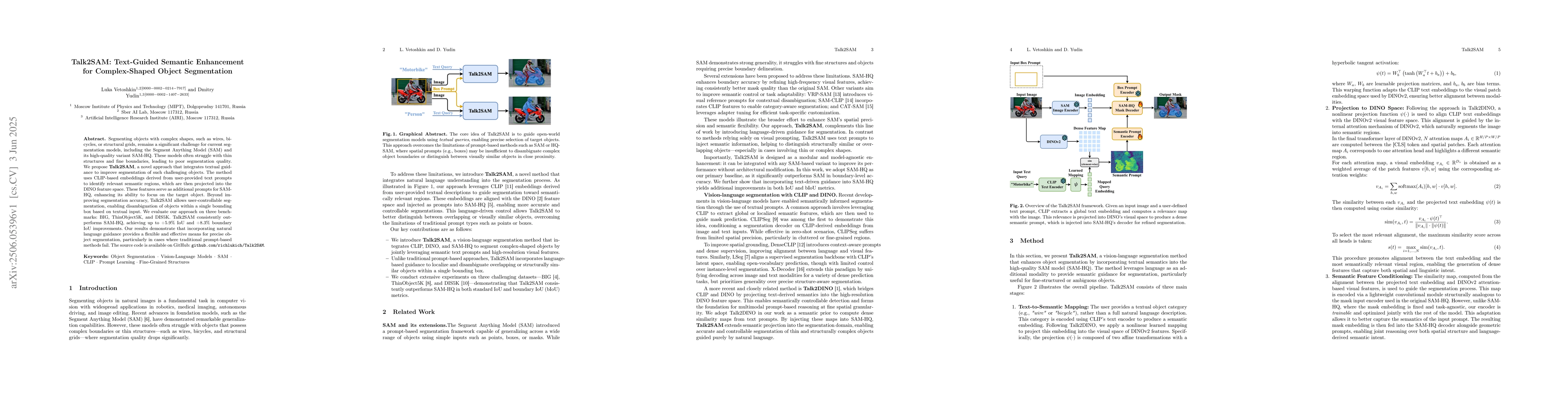 Segmenting objects with complex shapes, such as wires, bicycles, or structural grids, remains a significant challenge for current segmentation models, including the Segment Anything Model (SAM) and its high-quality variant SAM-HQ. These models often struggle with thin structures and fine boundaries, leading to poor segmentation quality. We propose Talk2SAM, a novel approach that integrates textual guidance to improve segmentation of such challenging objects. The method uses CLIP-based embeddings derived from user-provided text prompts to identify relevant semantic regions, which are then projected into the DINO feature space. These features serve as additional prompts for SAM-HQ, enhancing its ability to focus on the target object. Beyond improving segmentation accuracy, Talk2SAM allows user-controllable segmentation, enabling disambiguation of objects within a single bounding box based on textual input. We evaluate our approach on three benchmarks: BIG, ThinObject5K, and DIS5K. Talk2SAM consistently outperforms SAM-HQ, achieving up to +5.9\% IoU and +8.3\% boundary IoU improvements. Our results demonstrate that incorporating natural language guidance provides a flexible and effective means for precise object segmentation, particularly in cases where traditional prompt-based methods fail. The source code is available on GitHub: https://github.com/richlukich/Talk2SAM