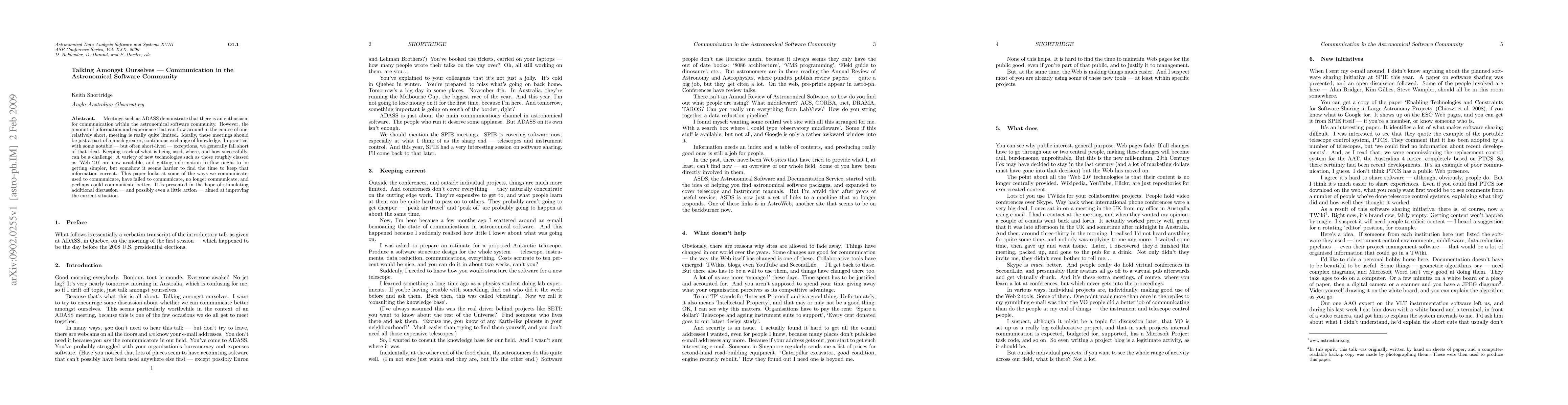 Meetings such as ADASS demonstrate that there is an enthusiasm for communication within the astronomical software community. However, the amount of information and experience that can flow around in the course of one, relatively short, meeting is really quite limited. Ideally, these meetings should be just a part of a much greater, continuous exchange of knowledge. In practice, with some notable - but often short-lived - exceptions, we generally fall short of that ideal. Keeping track of what is being used, where, and how successfully, can be a challenge. A variety of new technologies such as those roughly classed as 'Web 2.0' are now available, and getting information to flow ought to be getting simpler, but somehow it seems harder to find the time to keep that information current. This paper looks at some of the ways we communicate, used to communicate, have failed to communicate, no longer communicate, and perhaps could communicate better. It is presented in the hope of stimulating additional discussion - and possibly even a little action - aimed at improving the current situation.