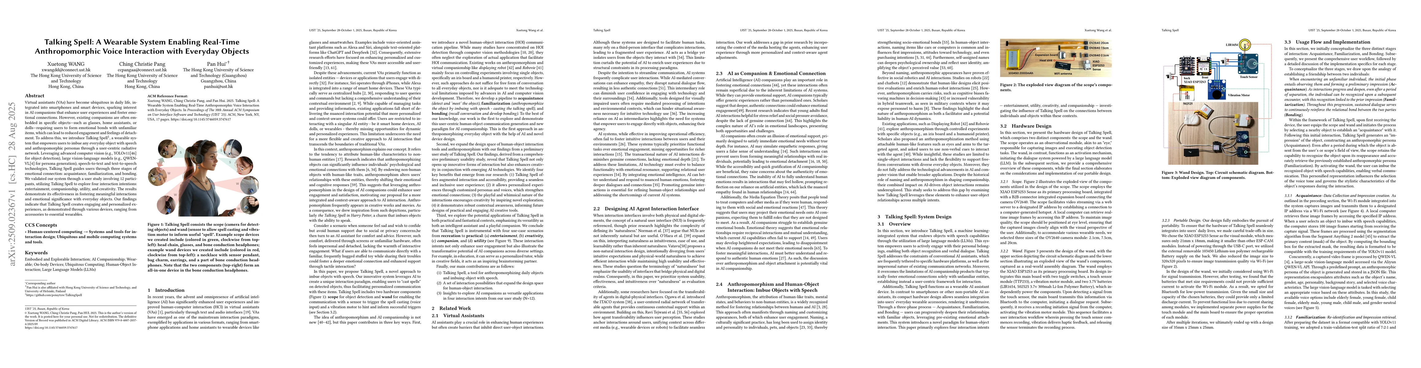 Virtual assistants (VAs) have become ubiquitous in daily life, integrated into smartphones and smart devices, sparking interest in AI companions that enhance user experiences and foster emotional connections. However, existing companions are often embedded in specific objects-such as glasses, home assistants, or dolls-requiring users to form emotional bonds with unfamiliar items, which can lead to reduced engagement and feelings of detachment. To address this, we introduce Talking Spell, a wearable system that empowers users to imbue any everyday object with speech and anthropomorphic personas through a user-centric radiative network. Leveraging advanced computer vision (e.g., YOLOv11 for object detection), large vision-language models (e.g., QWEN-VL for persona generation), speech-to-text and text-to-speech technologies, Talking Spell guides users through three stages of emotional connection: acquaintance, familiarization, and bonding. We validated our system through a user study involving 12 participants, utilizing Talking Spell to explore four interaction intentions: entertainment, companionship, utility, and creativity. The results demonstrate its effectiveness in fostering meaningful interactions and emotional significance with everyday objects. Our findings indicate that Talking Spell creates engaging and personalized experiences, as demonstrated through various devices, ranging from accessories to essential wearables.