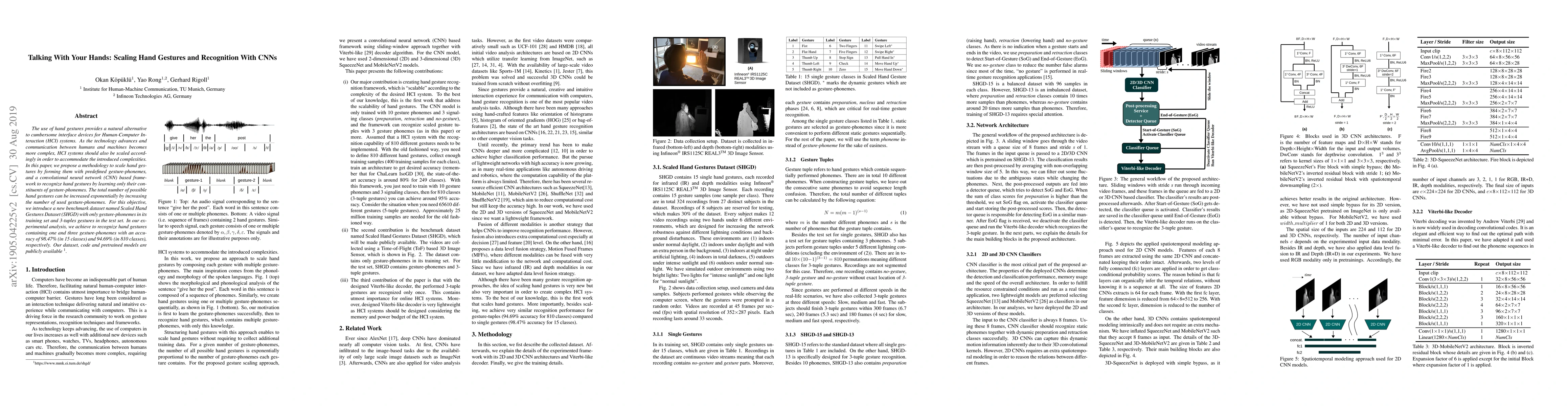 This research paper proposes a methodology for scaling hand gestures in Human-Computer Interaction systems using predefined gesture-phonemes and a convolutional neural network (CNN) framework. The authors introduce a new dataset, the Scaled Hand Gestures Dataset (SHGD), and demonstrate high recognition accuracy for both single and multi-part gestures. For further details, I recommend reviewing the full paper directly.