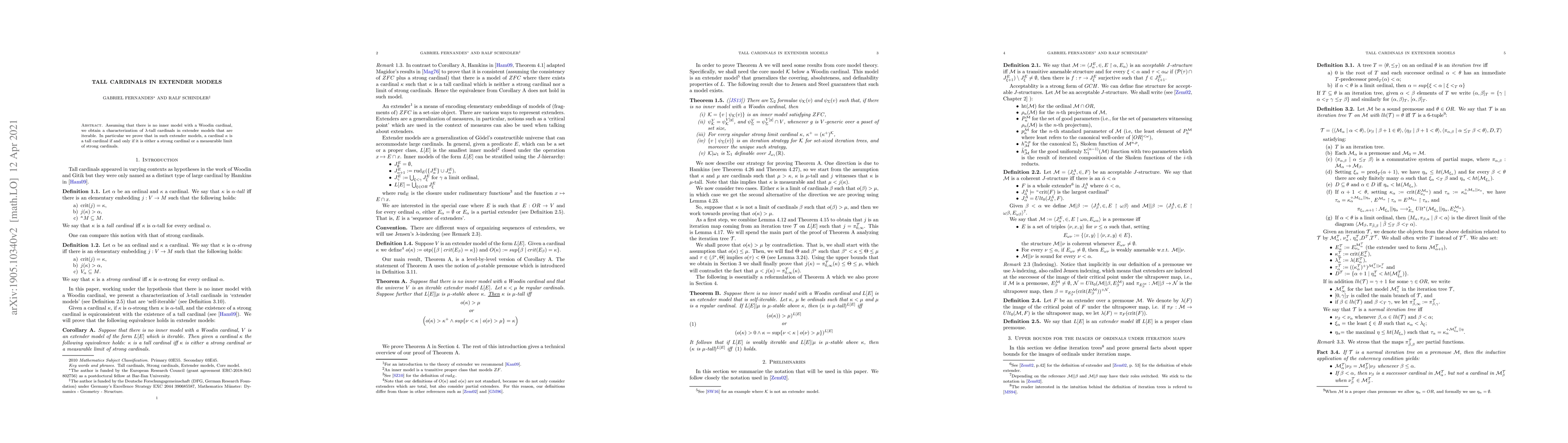 Summary: This paper characterizes $\lambda$-tall cardinals in iterable extender models under the assumption of no inner model with a Woodin cardinal, proving that $\kappa$ is tall if it is either a strong cardinal or a measurable limit of strong cardinals.