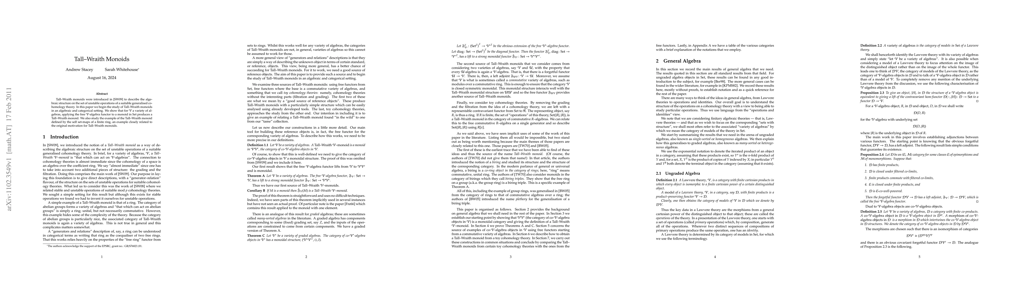 This paper initiates the study of Tall-Wraith monoids in algebraic and categorical contexts, demonstrating that applying the free V-algebra functor to a monoid in Set yields a Tall-Wraith monoid for any variety of algebras V. It also explores the example of Tall-Wraith monoids derived from self set-maps of a finite ring.