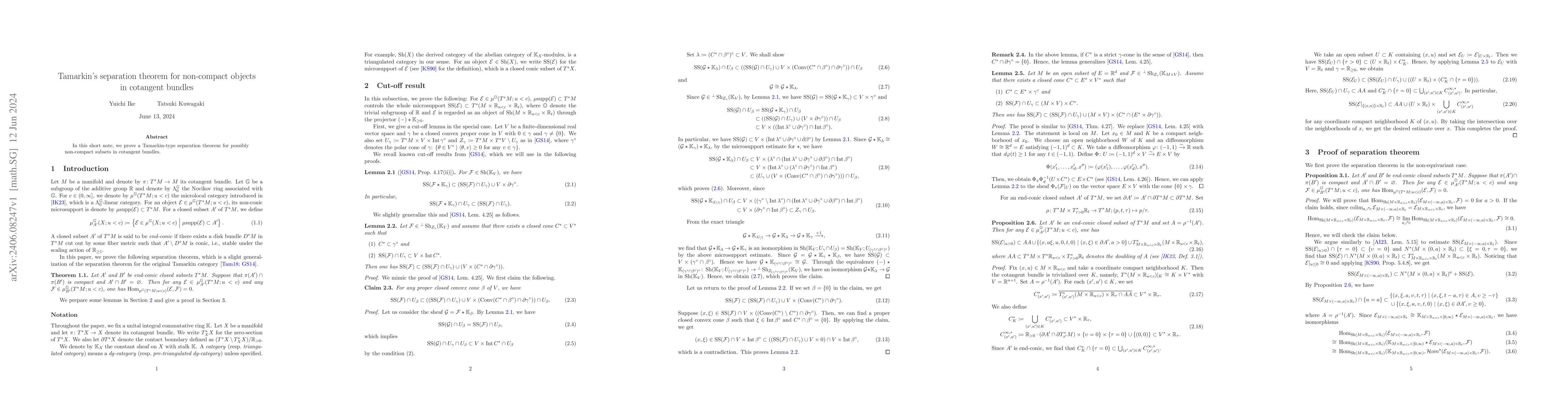 Summary: This paper establishes a Tamarkin-style separation theorem applicable to non-compact subsets within cotangent bundles, extending the theorem's scope beyond compact objects.