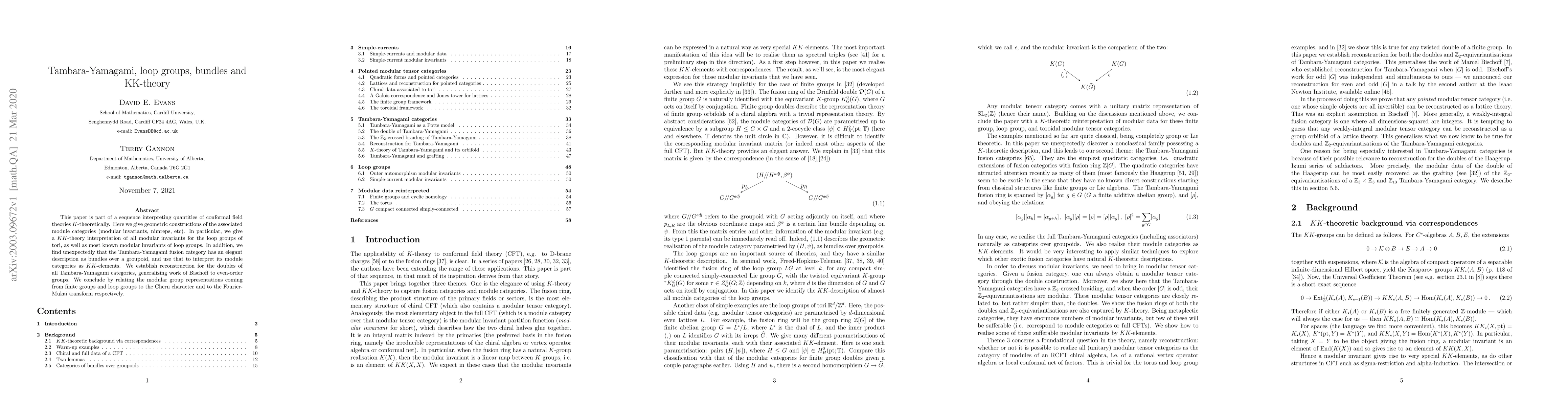 This paper presents geometric constructions for module categories of conformal field theories, interpreting modular invariants of loop groups using KK-theory, and introduces a groupoid-based description of the Tambara-Yamagami fusion category, leading to a KK-theory interpretation of its module categories. It also generalizes reconstruction results for Tambara-Yamagami categories and links modular group representations to the Chern character and Fourier-Mukai transform.