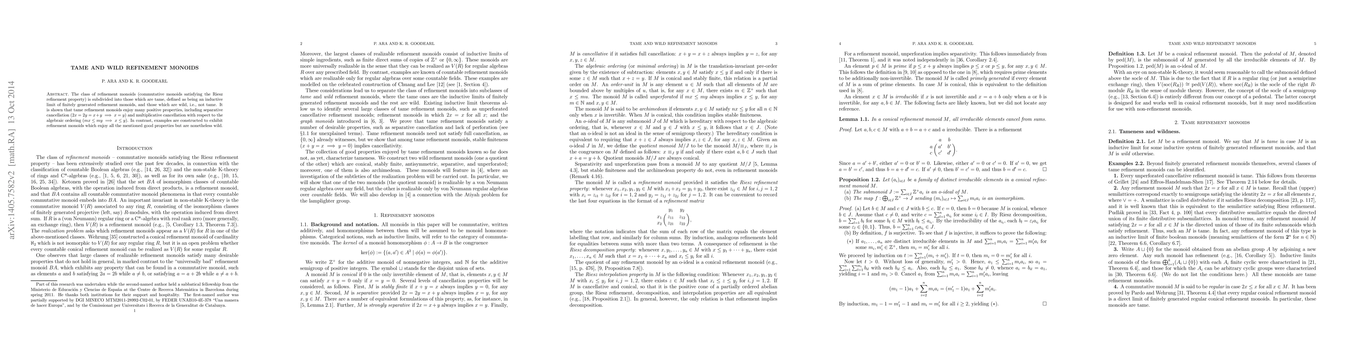 This paper classifies refinement monoids into tame and wild categories, showing that tame monoids possess desirable properties such as separative cancellation and multiplicative cancellation, while wild monoids, despite exhibiting similar properties, lack these favorable traits.