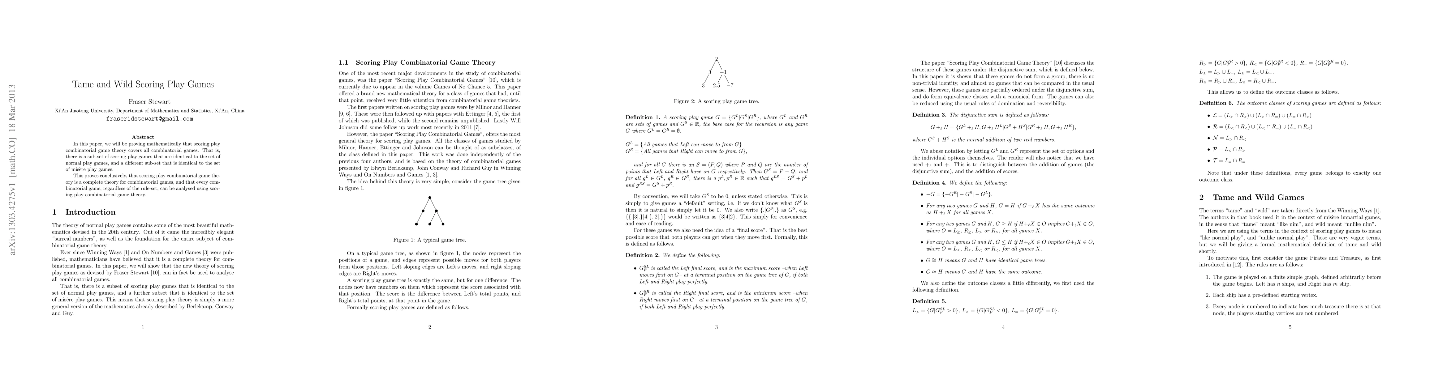 In this paper, we will be proving mathematically that scoring play combinatorial game theory covers all combinatorial games. That is, there is a sub-set of scoring play games that are identical to the set of normal play games, and a different sub-set that is identical to the set of mis\`ere play games. This proves conclusively, that scoring play combinatorial game theory is a complete theory for combinatorial games, and that every combinatorial game, regardless of the rule-set, can be analysed using scoring play combinatorial game theory.