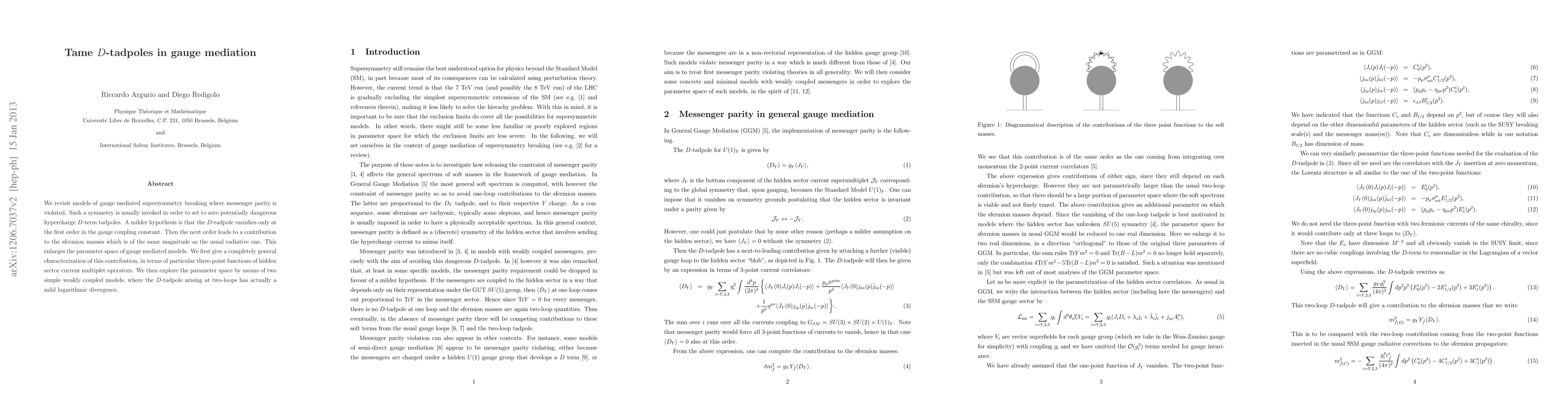 Researchers explore a new hypothesis in gauge-mediated supersymmetry breaking models that could expand the parameter space by allowing for milder D-tadpole vanishing conditions.