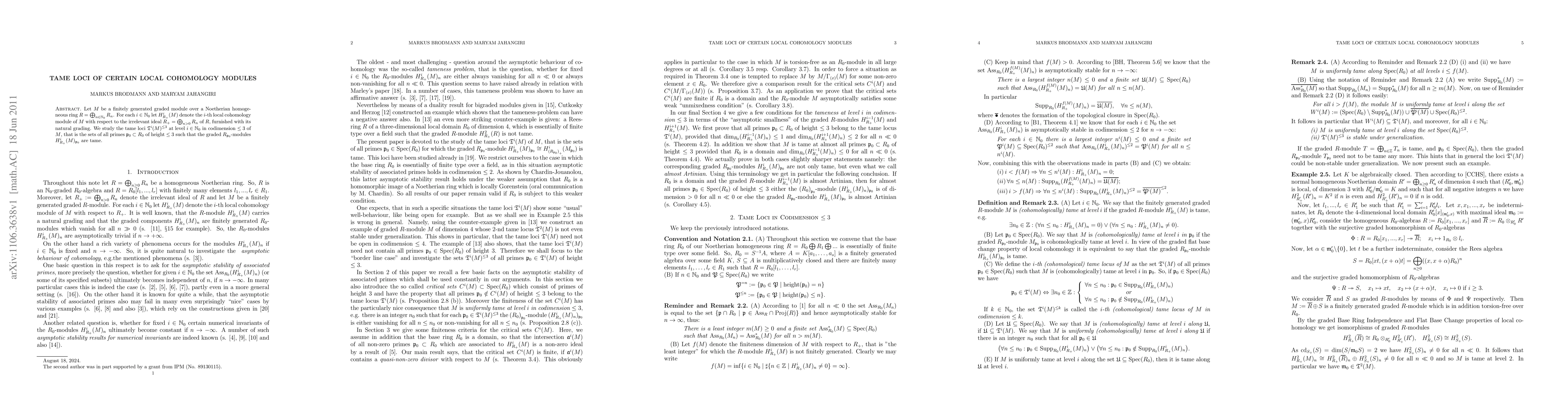 Let $M$ be a finitely generated graded module over a Noetherian homogeneous ring $R = \bigoplus_{n \in \mathbb{N}_0}R_n$. For each $i \in \mathbb{N}_0$ let $H^i_{R_{+}}(M)$ denote the $i$-th local cohomology module of $M$ with respect to the irrelevant ideal $R_+ = \bigoplus_{n > 0} R_n$ of $R$, furnished with its natural grading. We study the tame loci $\ft^i(M)^{\leq 3}$ at level $i \in \mathbb{N}_0$ in codimension $\leq 3$ of $M$, that is the sets of all primes $\fp_0 \subset R_0$ of height $\leq 3$ such that the graded $R_{\fp_0}$-modules $H^i_{R_{+}}(M)_{\fp_0}$ are tame.