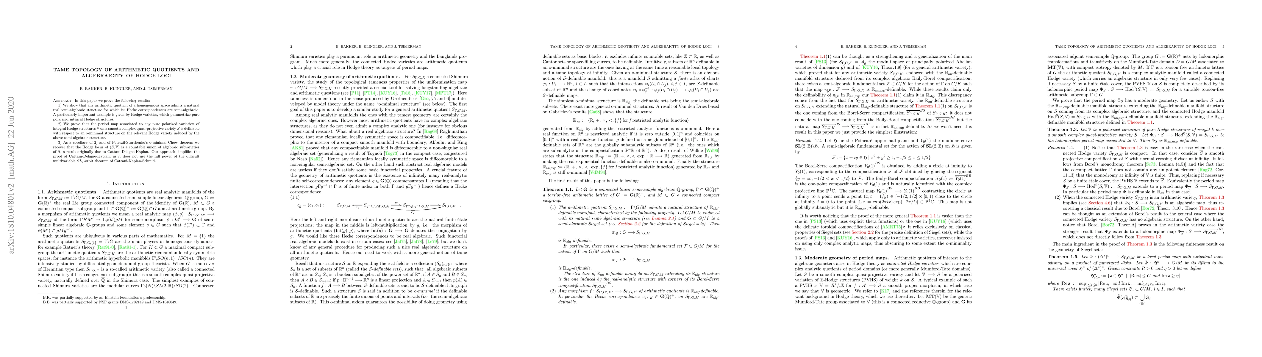 In this paper we prove the following results: $1)$ We show that any arithmetic quotient of a homogeneous space admits a natural real semi-algebraic structure for which its Hecke correspondences are semi-algebraic. A particularly important example is given by Hodge varieties, which parametrize pure polarized integral Hodge structures. $2)$ We prove that the period map associated to any pure polarized variation of integral Hodge structures $\mathbb{V}$ on a smooth complex quasi-projective variety $S$ is definable with respect to an o-minimal structure on the relevant Hodge variety induced by the above semi-algebraic structure. $3)$ As a corollary of $2)$ and of Peterzil-Starchenko's o-minimal Chow theorem we recover that the Hodge locus of $(S, \mathbb{V})$ is a countable union of algebraic subvarieties of $S$, a result originally due to Cattani-Deligne-Kaplan. Our approach simplifies the proof of Cattani-Deligne-Kaplan, as it does not use the full power of the difficult multivariable $SL_2$-orbit theorem of Cattani-Kaplan-Schmid.