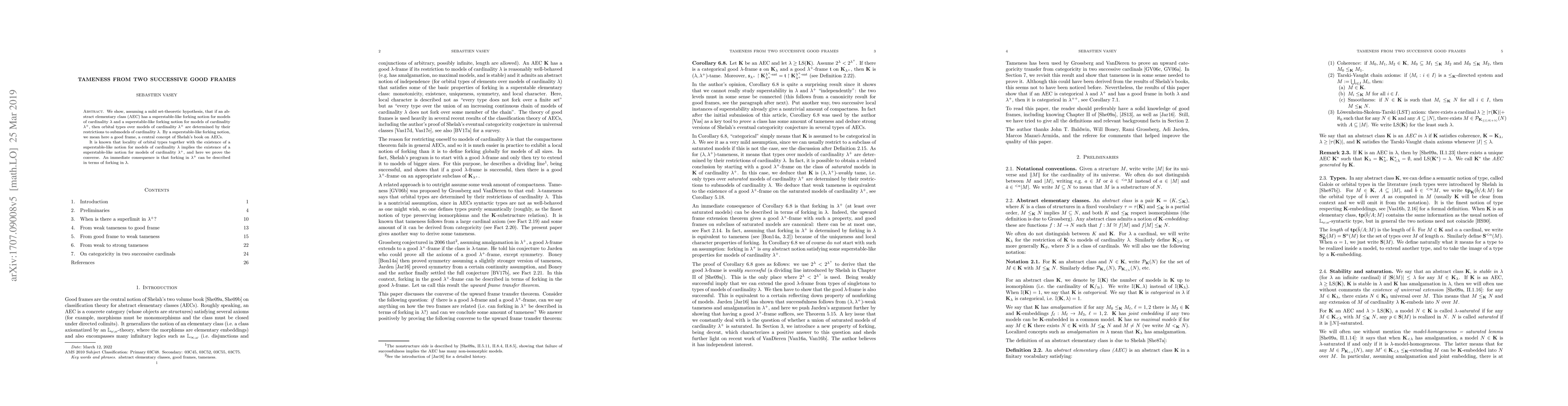 We show, assuming a mild set-theoretic hypothesis, that if an abstract elementary class (AEC) has a superstable-like forking notion for models of cardinality $\lambda$ and a superstable-like forking notion for models of cardinality $\lambda^+$, then orbital types over models of cardinality $\lambda^+$ are determined by their restrictions to submodels of cardinality $\lambda$. By a superstable-like forking notion, we mean here a good frame, a central concept of Shelah's book on AECs. It is known that locality of orbital types together with the existence of a superstable-like notion for models of cardinality $\lambda$ implies the existence of a superstable-like notion for models of cardinality $\lambda^+$, but here we prove the converse. An immediate consequence is that forking in $\lambda^+$ can be described in terms of forking in $\lambda$.