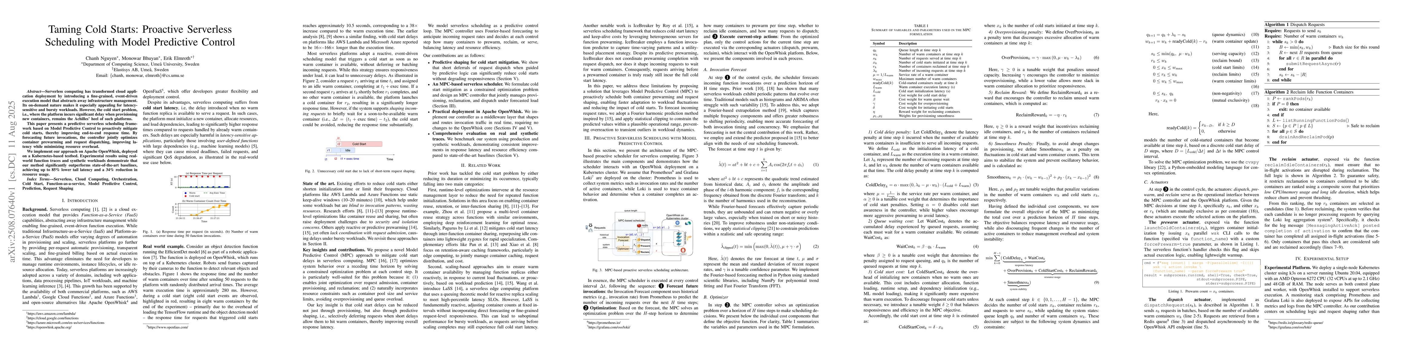 The research presents a predictive serverless scheduling framework based on Model Predictive Control (MPC) to proactively mitigate cold starts, improving end-to-end response time by forecasting future invocations and jointly optimizing container prewarming and request dispatching.