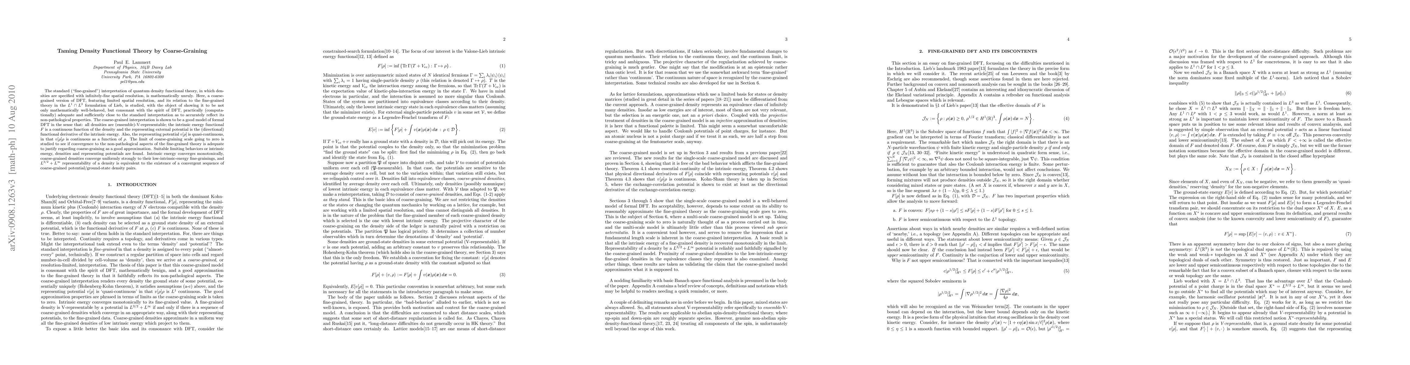 This paper proposes a coarse-grained version of density functional theory (DFT) that simplifies mathematical complexities while maintaining computational adequacy and accuracy. The coarse-grained DFT is shown to be mathematically well-behaved, V-representable, and converges to the non-pathological aspects of the fine-grained theory as the coarse-graining scale approaches zero.