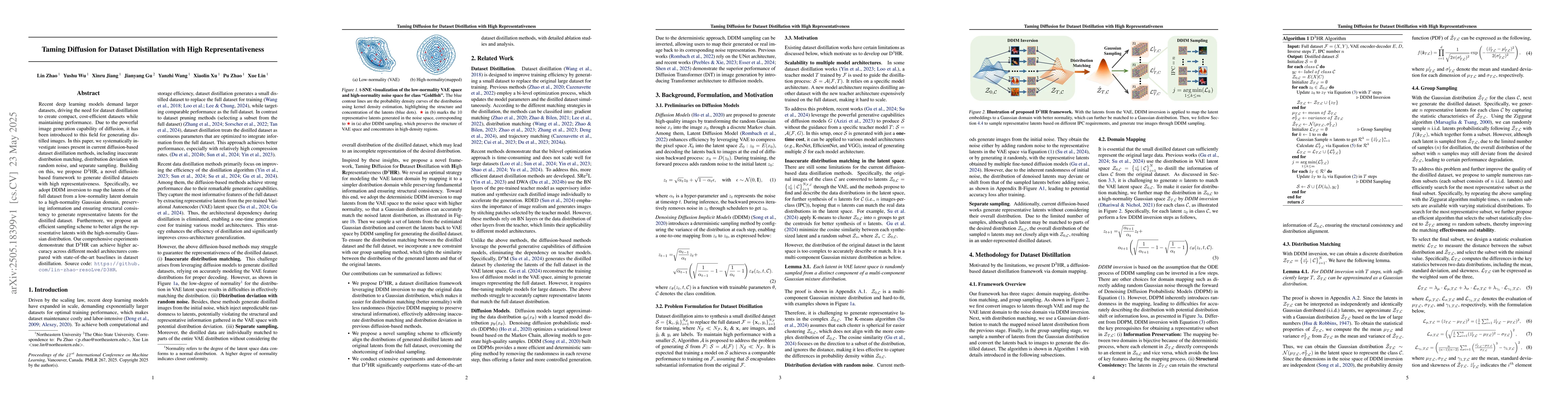 Recent deep learning models demand larger datasets, driving the need for dataset distillation to create compact, cost-efficient datasets while maintaining performance. Due to the powerful image generation capability of diffusion, it has been introduced to this field for generating distilled images. In this paper, we systematically investigate issues present in current diffusion-based dataset distillation methods, including inaccurate distribution matching, distribution deviation with random noise, and separate sampling. Building on this, we propose D^3HR, a novel diffusion-based framework to generate distilled datasets with high representativeness. Specifically, we adopt DDIM inversion to map the latents of the full dataset from a low-normality latent domain to a high-normality Gaussian domain, preserving information and ensuring structural consistency to generate representative latents for the distilled dataset. Furthermore, we propose an efficient sampling scheme to better align the representative latents with the high-normality Gaussian distribution. Our comprehensive experiments demonstrate that D^3HR can achieve higher accuracy across different model architectures compared with state-of-the-art baselines in dataset distillation. Source code: https://github.com/lin-zhao-resoLve/D3HR.