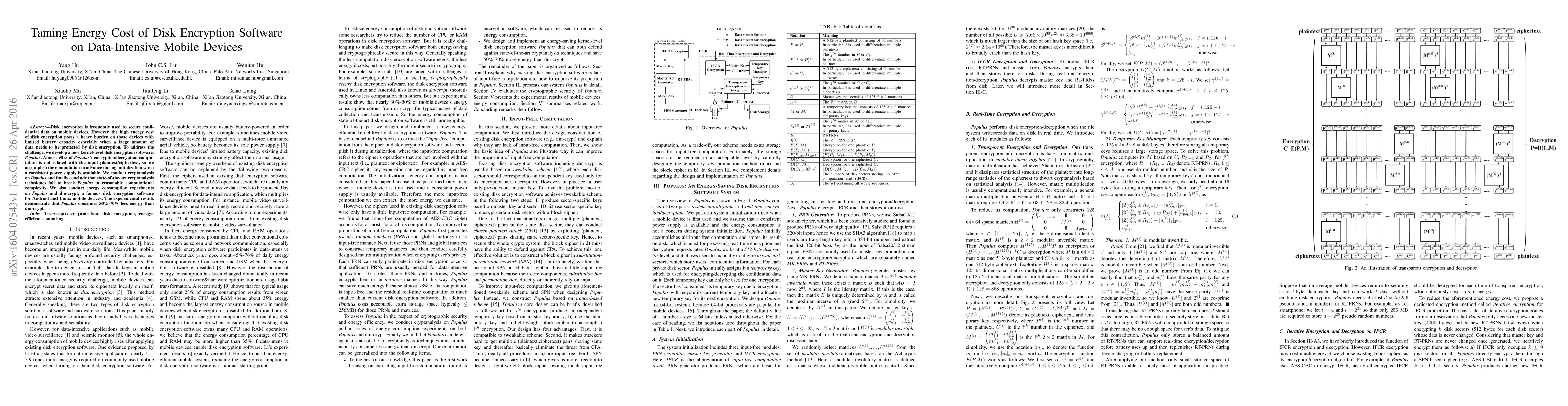 The paper introduces Populus, a kernel-level disk encryption software designed to reduce energy costs on data-intensive mobile devices. It pre-computes 98% of encryption/decryption tasks during initialization, leading to 50%-70% less energy consumption compared to dm-crypt, while maintaining security against state-of-the-art cryptanalysis techniques.