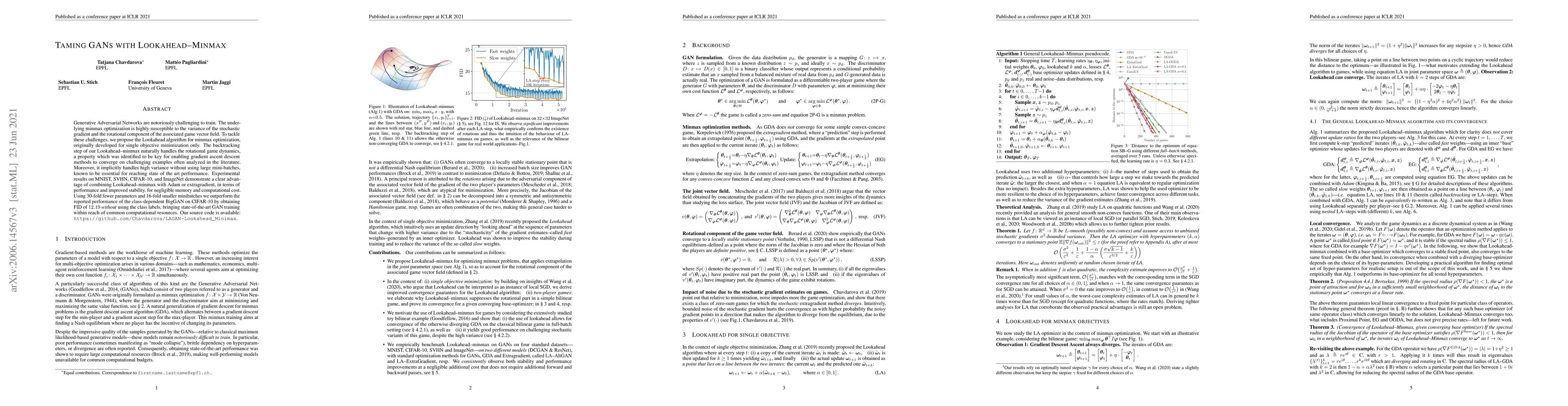 This paper proposes a method to train Generative Adversarial Networks (GANs) using Lookahead-minmax optimization, which improves performance and stability with minimal computational cost.