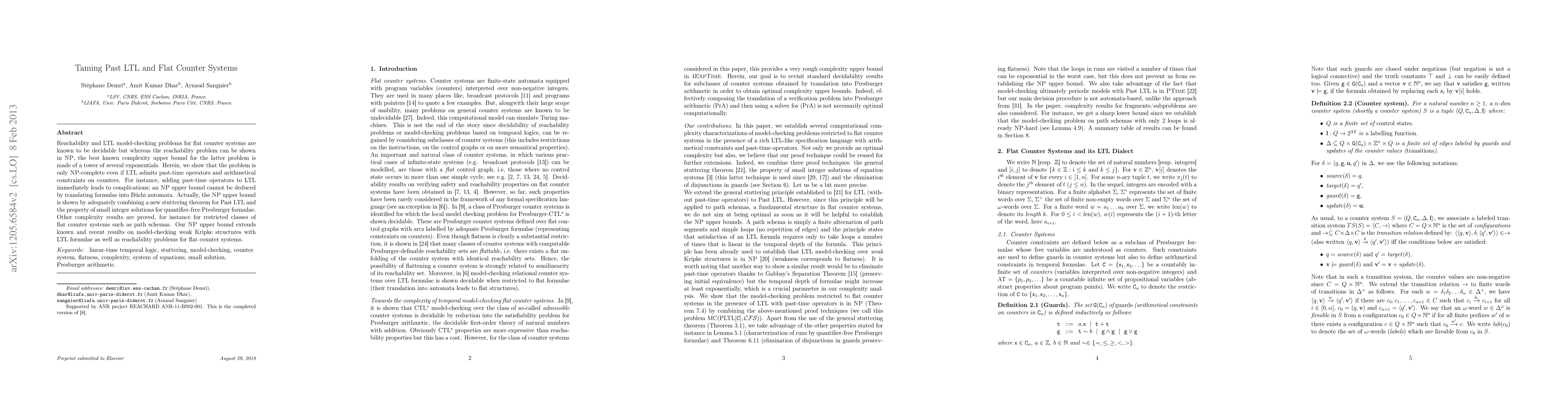This paper demonstrates that the LTL model-checking problem for flat counter systems remains NP-complete even with past-time operators and arithmetic constraints. The NP upper bound is achieved through a novel stuttering theorem for Past LTL and leveraging small integer solutions for quantifier-free Presburger formulae.
