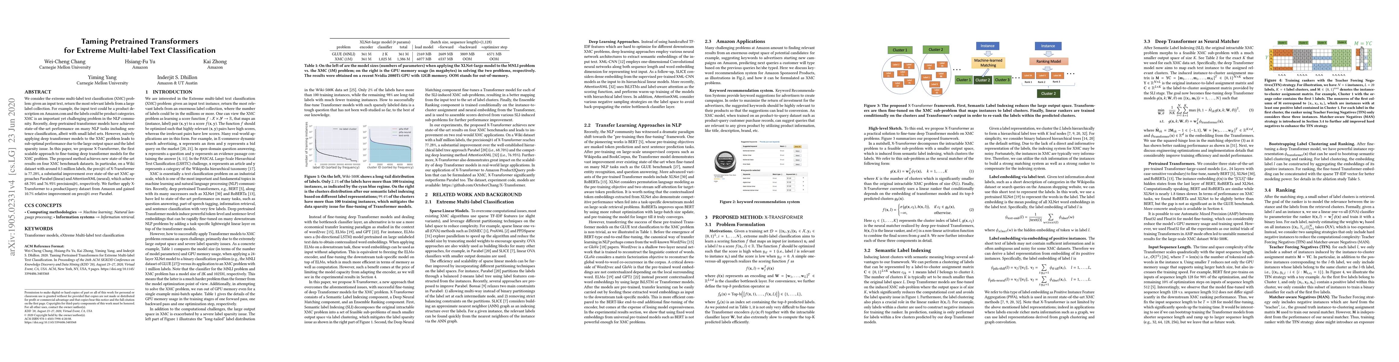 This paper introduces X-Transformer, a scalable method for fine-tuning pretrained transformer models to tackle extreme multi-label text classification (XMC), achieving state-of-the-art performance on benchmark datasets with significant improvements over existing methods, particularly on datasets with hundreds of thousands of labels.