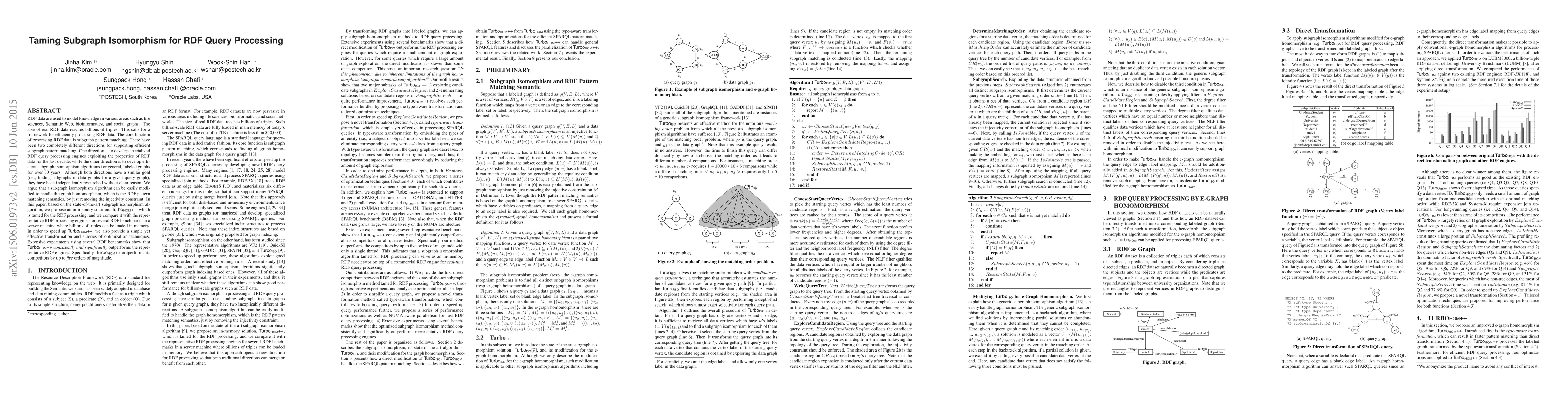 This paper proposes TurboHOM++, an in-memory solution based on a modified subgraph isomorphism algorithm for efficient RDF query processing. Experiments show TurboHOM++ significantly outperforms existing RDF engines, achieving up to five orders of magnitude faster query processing.