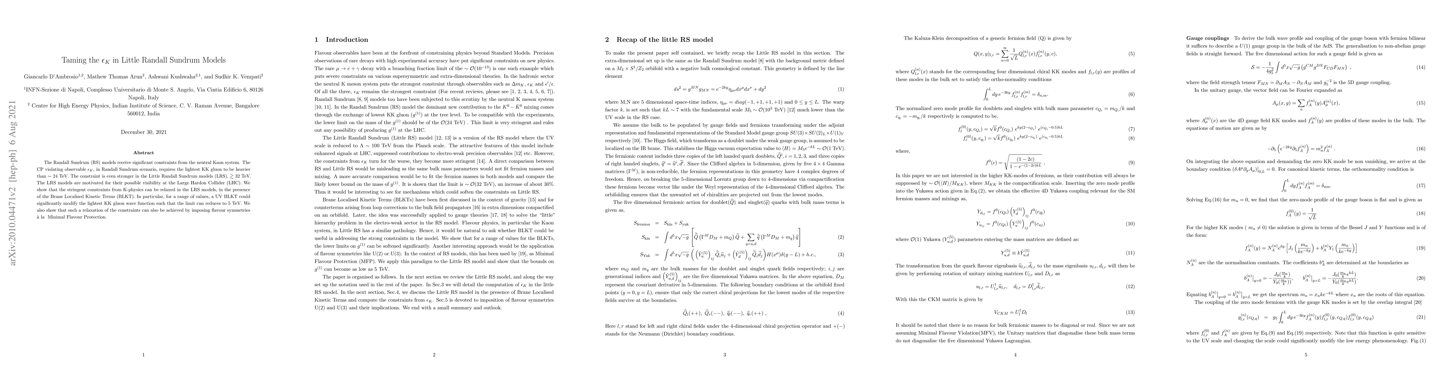 This paper addresses the constraints imposed by the CP violating observable $\epsilon_K$ on Little Randall Sundrum models, showing that the lightest KK gluon must be heavier than 32 TeV. It proposes that Brane Localised Kinetic Terms (BLKT) or Minimal Flavour Protection can relax these constraints, potentially reducing the required mass to around 5 TeV.
