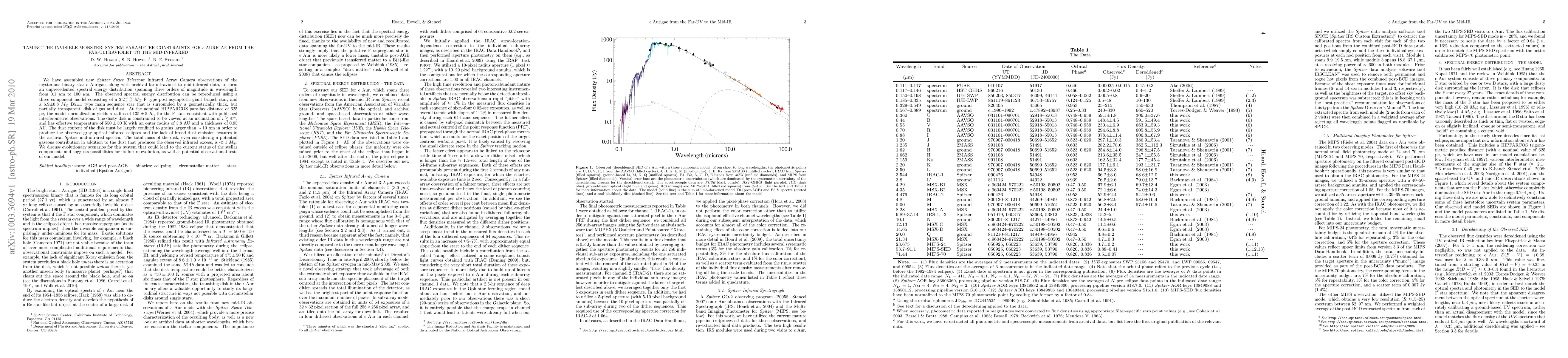 We have assembled new Spitzer Space Telescope Infrared Array Camera observations of the mysterious binary star Epsilon Aurigae, along with archival far-ultraviolet to mid-infrared data, to form an unprecedented spectral energy distribution spanning three orders of magnitude in wavelength from 0.1 microns to 100 microns. The observed spectral energy distribution can be reproduced using a three component model consisting of a 2.2+0.9/-0.8 Msun F type post-asymptotic giant branch star, and a 5.9+/-0.8 Msun B5+/-1 type main sequence star that is surrounded by a geometrically thick, but partially transparent, disk of gas and dust. At the nominal HIPPARCOS parallax distance of 625 pc, the model normalization yields a radius of 135+/-5 Rsun for the F star, consistent with published interferometric observations. The dusty disk is constrained to be viewed at an inclination of i > 87 deg, and has effective temperature of 550+/-50 K with an outer radius of 3.8 AU and a thickness of 0.95 AU. The dust content of the disk must be largely confined to grains larger than ~10 microns in order to produce the observed gray optical-infrared eclipses and the lack of broad dust emission features in the archival Spitzer mid-infrared spectra. The total mass of the disk, even considering a potential gaseous contribution in addition to the dust that produces the observed infrared excess, is << 1 Msun. We discuss evolutionary scenarios for this system that could lead to the current status of the stellar components and suggests possibilities for its future evolution, as well as potential observational tests of our model.