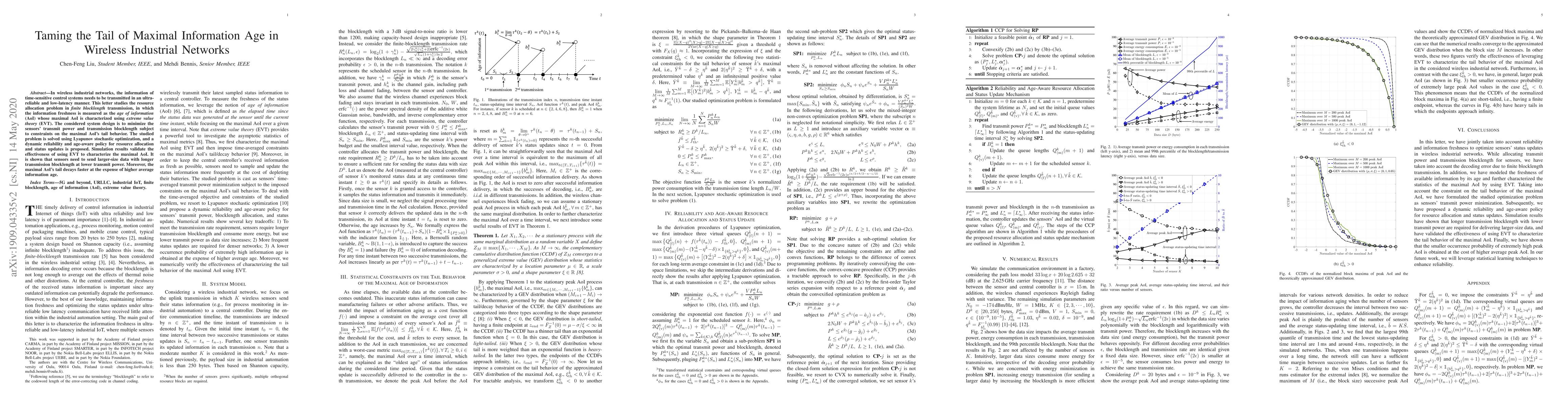 This paper proposes a resource allocation strategy in wireless industrial networks to minimize sensors' transmit power and blocklength while controlling the tail behavior of the maximal age of information (AoI), leveraging extreme value theory (EVT). Simulation results demonstrate that lower transmit power requires larger data sizes and longer blocklengths, achieving faster decay of the maximal AoI's tail.