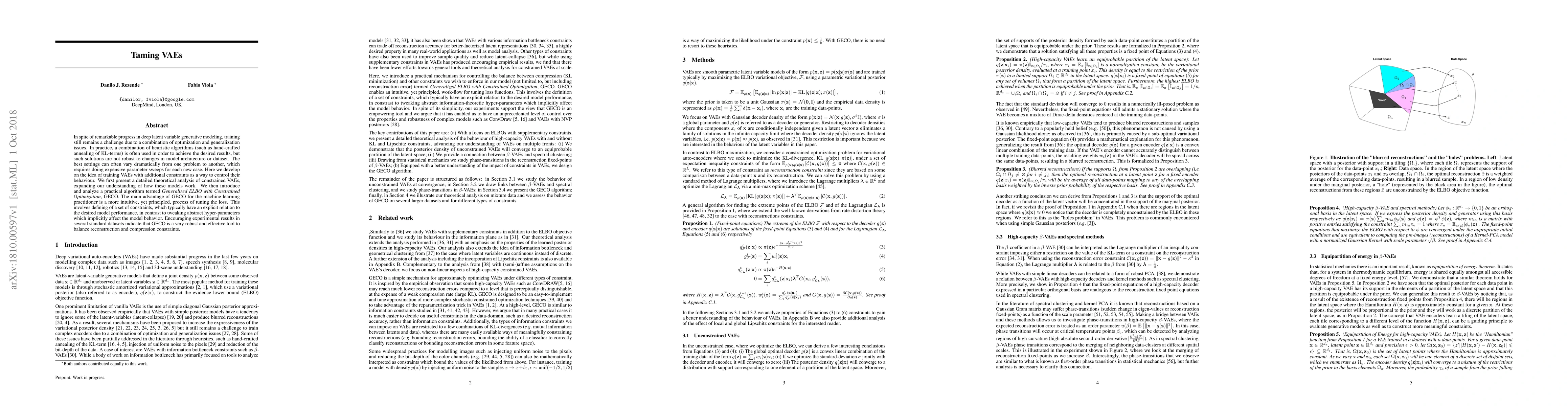 Researchers develop a method called Generalized ELBO with Constrained Optimization (GECO) to train Variational Autoencoders (VAEs), improving robustness and balance between reconstruction and compression constraints.