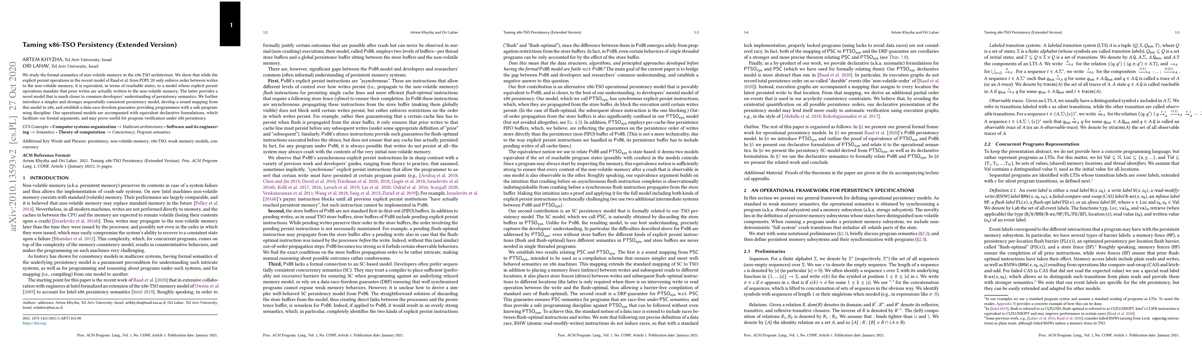 This paper formalizes the semantics of non-volatile memory in x86-TSO architecture, demonstrating that explicit persist operations in the recent model enforce write order but can be equivalently interpreted to ensure prior writes are committed to non-volatile memory. It introduces a simpler, stronger sequentially consistent persistency model, provides a sound mapping to x86, and guarantees data-race-freedom for safe programming.