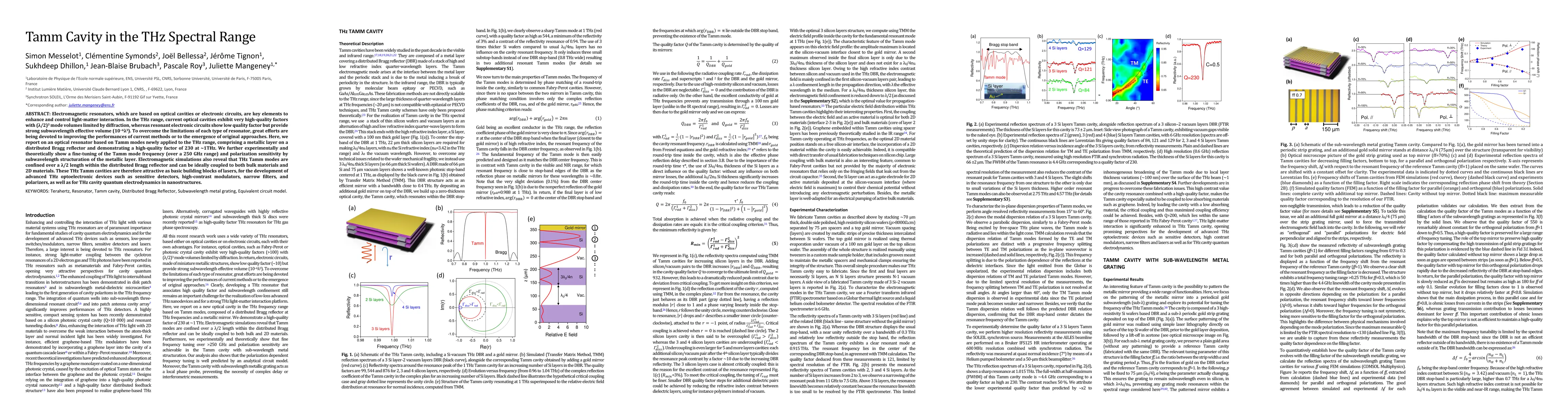 This paper introduces a Tamm cavity utilizing metallic layers on a distributed Bragg reflector to enhance light-matter interaction in the THz range, achieving a high-quality factor of 230 at ~1 THz. It demonstrates fine-tuning over a 250 GHz range and polarization sensitivity, positioning THz Tamm cavities as promising components for advanced optoelectronic devices and quantum electrodynamics.