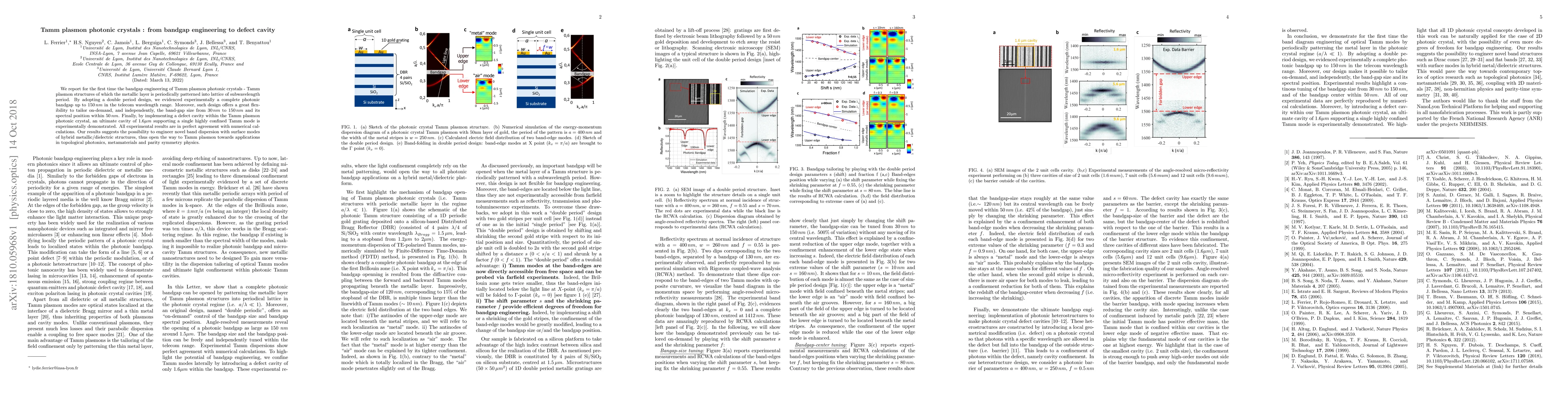 This paper reports on the successful bandgap engineering of Tamm plasmon photonic crystals, demonstrating a complete photonic bandgap up to 150 nm in the telecom range. The study also shows the creation of a defect cavity supporting a highly confined Tamm mode, paving the way for applications in topological photonics and metamaterials.