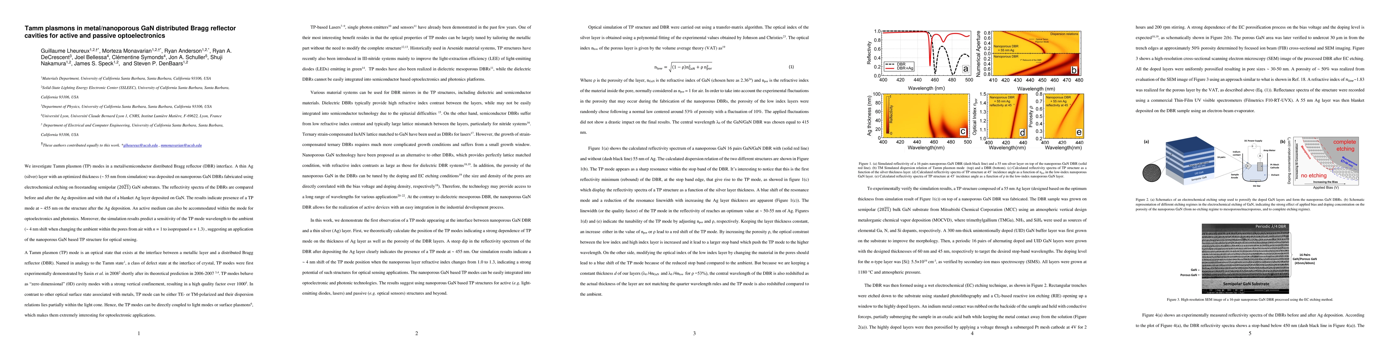 This paper investigates Tamm plasmon modes in metal/nanoporous GaN distributed Bragg reflectors, showing the presence of a TP mode at ~455 nm after depositing an optimized Ag layer, and highlighting potential applications in optoelectronics and optical sensing due to its sensitivity to ambient changes.